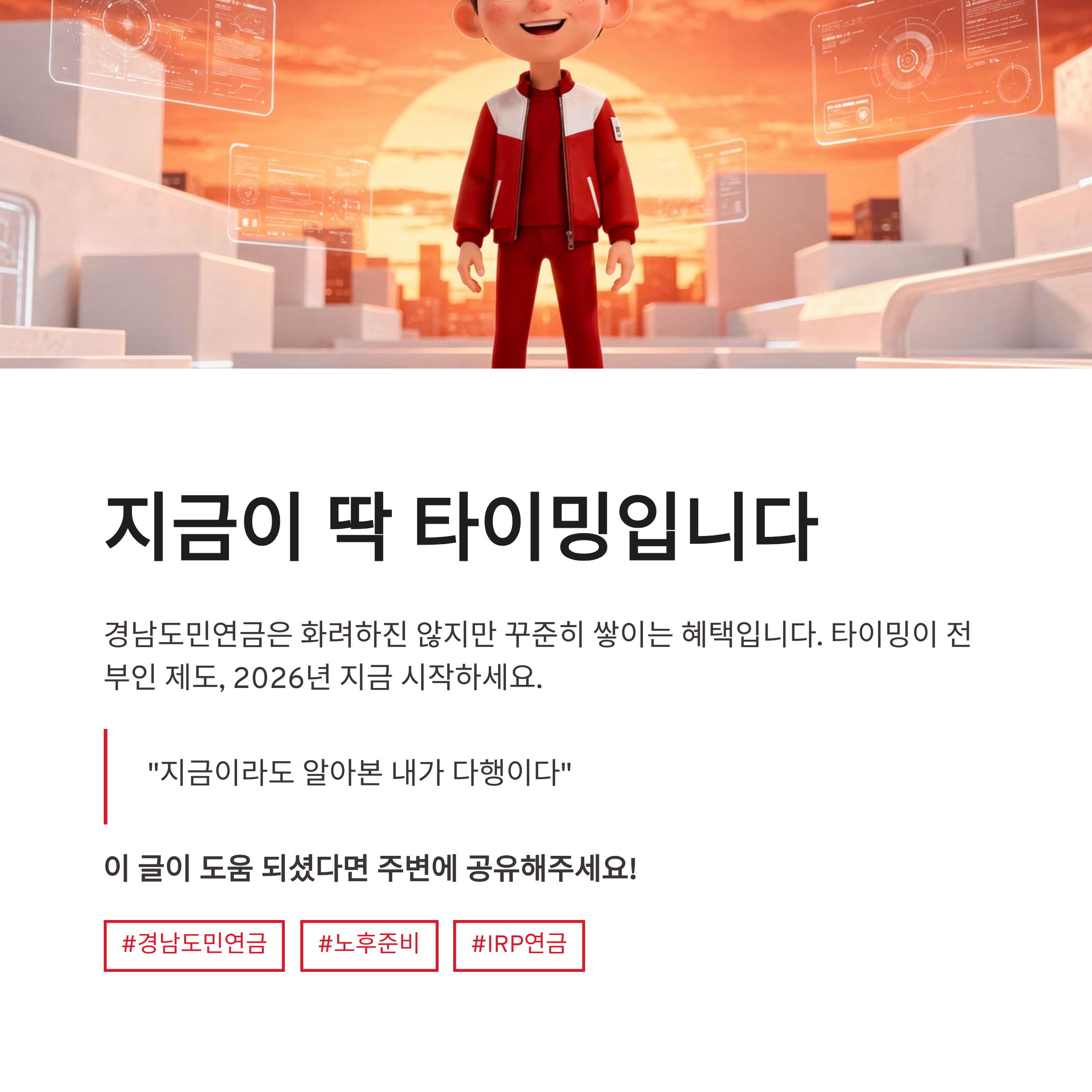 #경남도민연금 #경남연금지원 #IRP연금 #노후준비 #경상남도혜택 #중장년연금 #연금지원사업 #2026연금 #경남복지정책 #개인형퇴직연금 #연금세액공제 #중년재테크 #노후자금준비 #지방자치연금 #경남정책