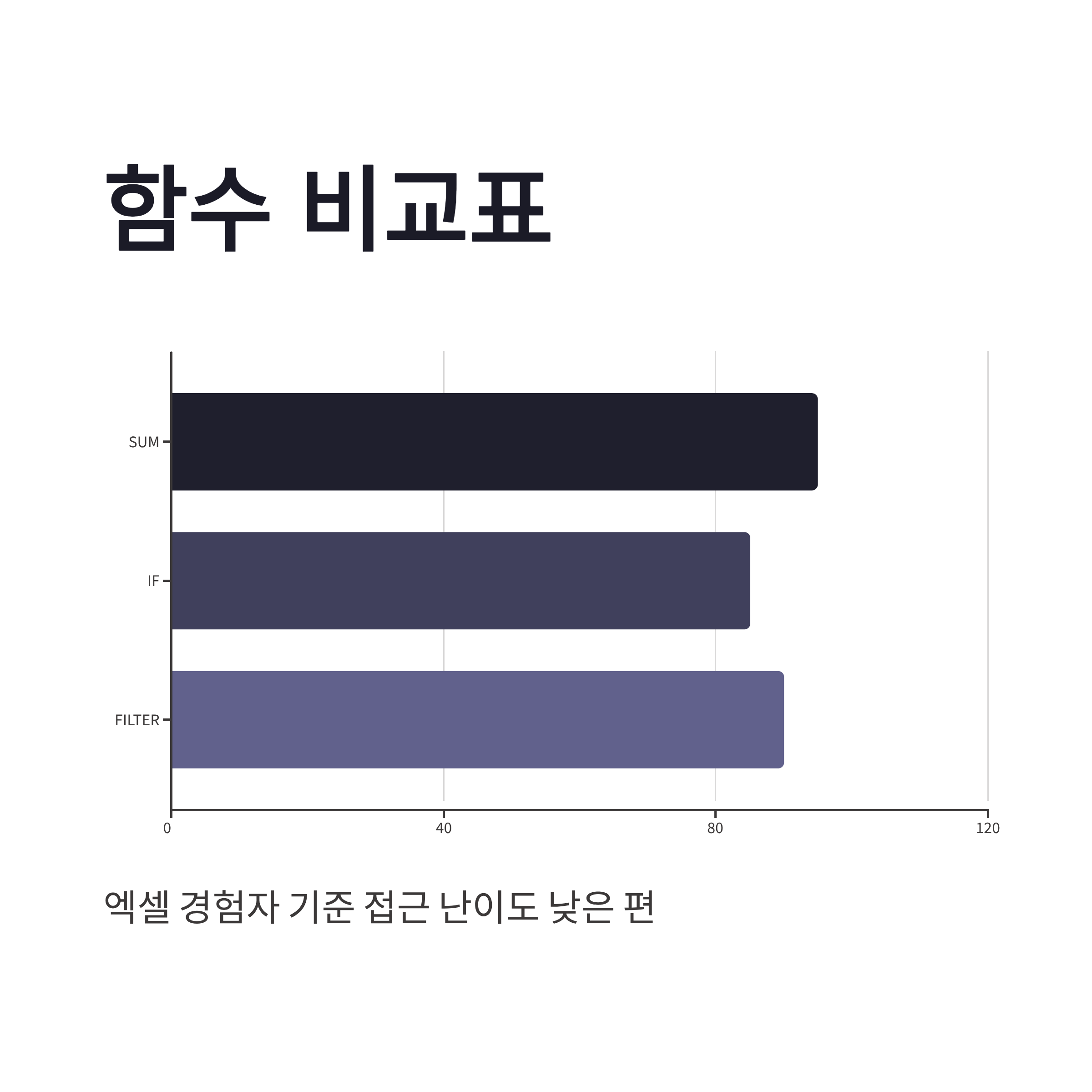 | IF 함수 | =IF(A1>0,"O","X") | 조건식 이해 쉬움 |