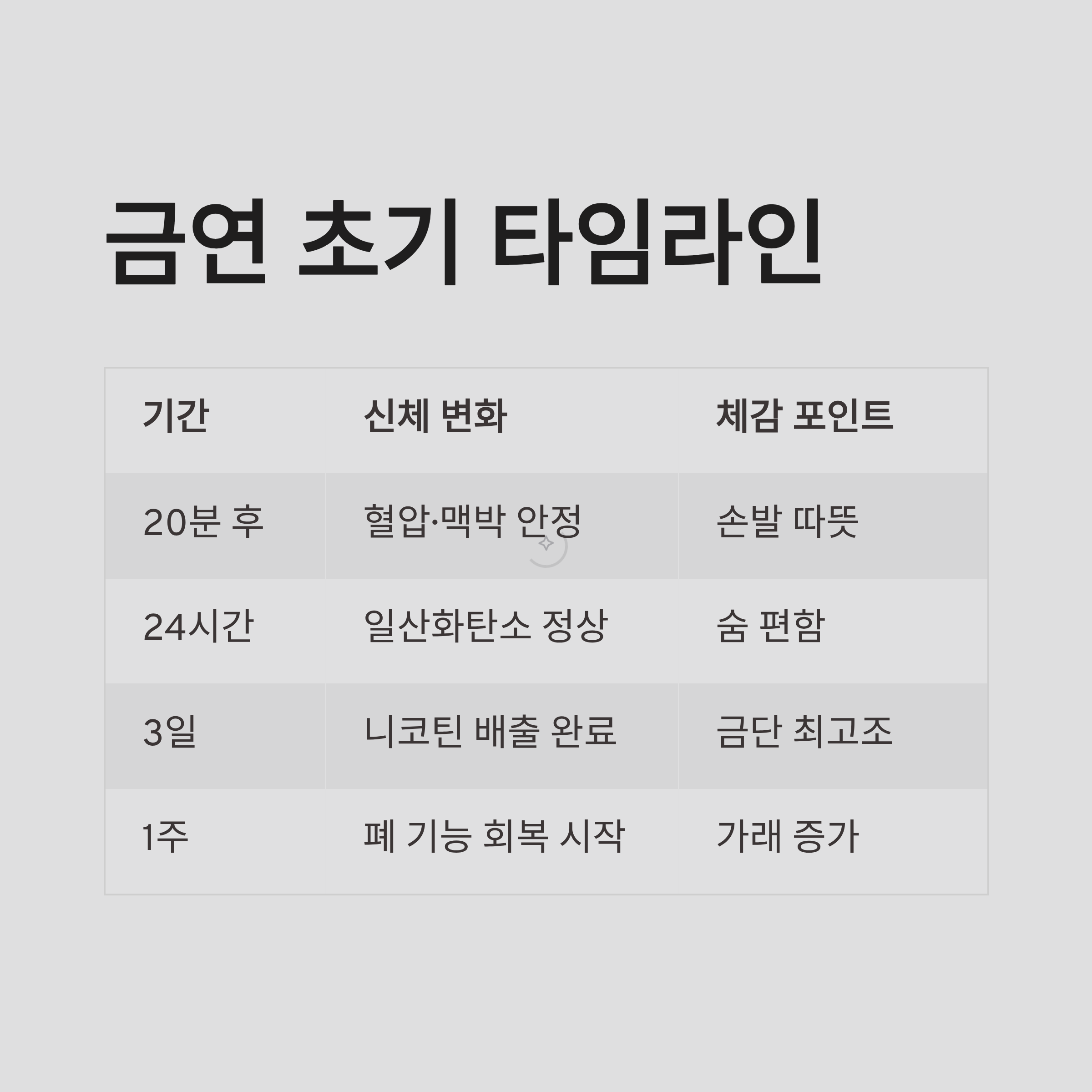 | 기간 | 금연 후 신체 변화 | 체감 포인트 |
