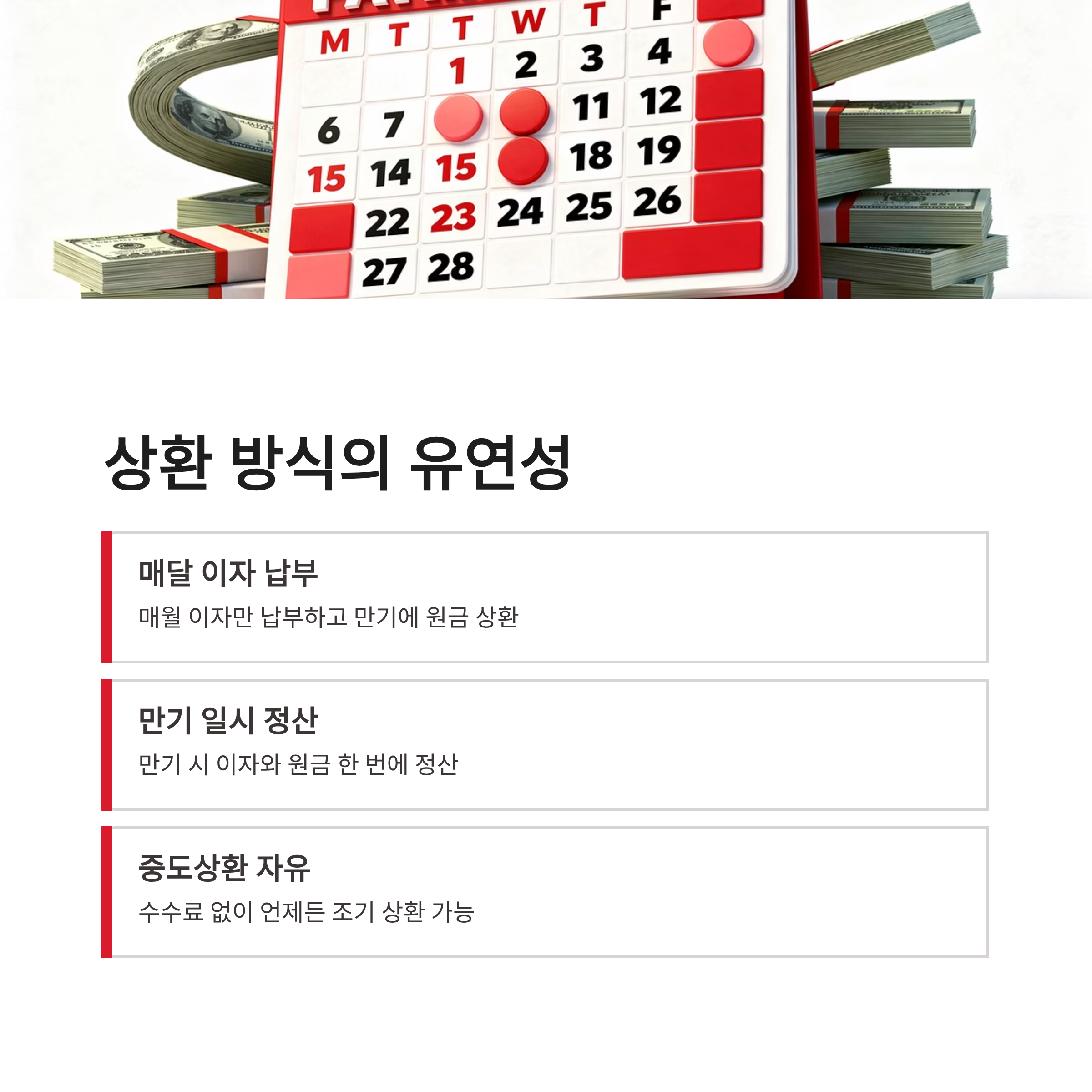 | 상환 방식 | 만기 일시상환 or 분할상환 |