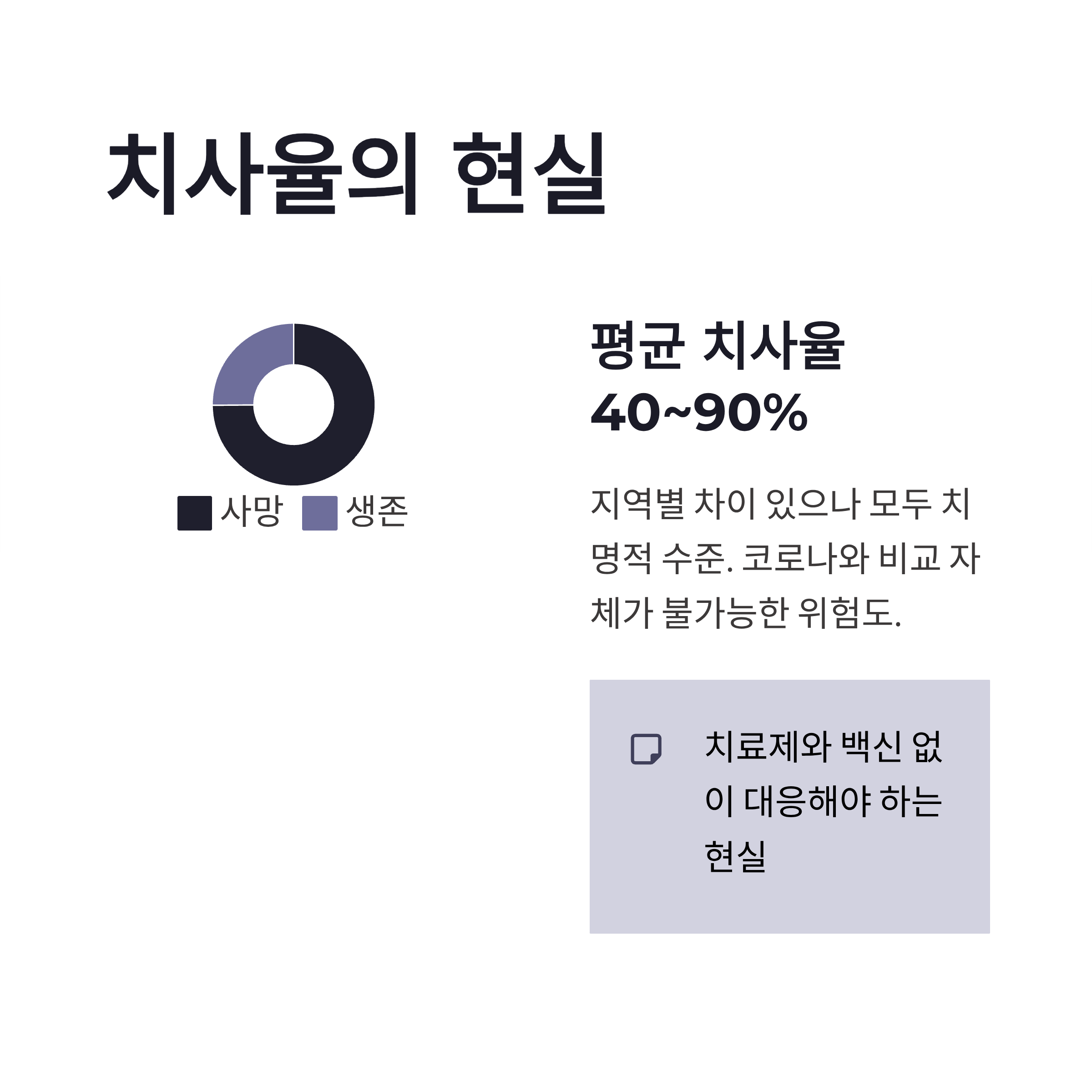 게다가 사람 간 전파도 가능하다는 점에서 방역 난이도가 확 올라갑니다. 의료진 감염 사례도 실제로 보고됐다는 점이 더 무섭더라구요.