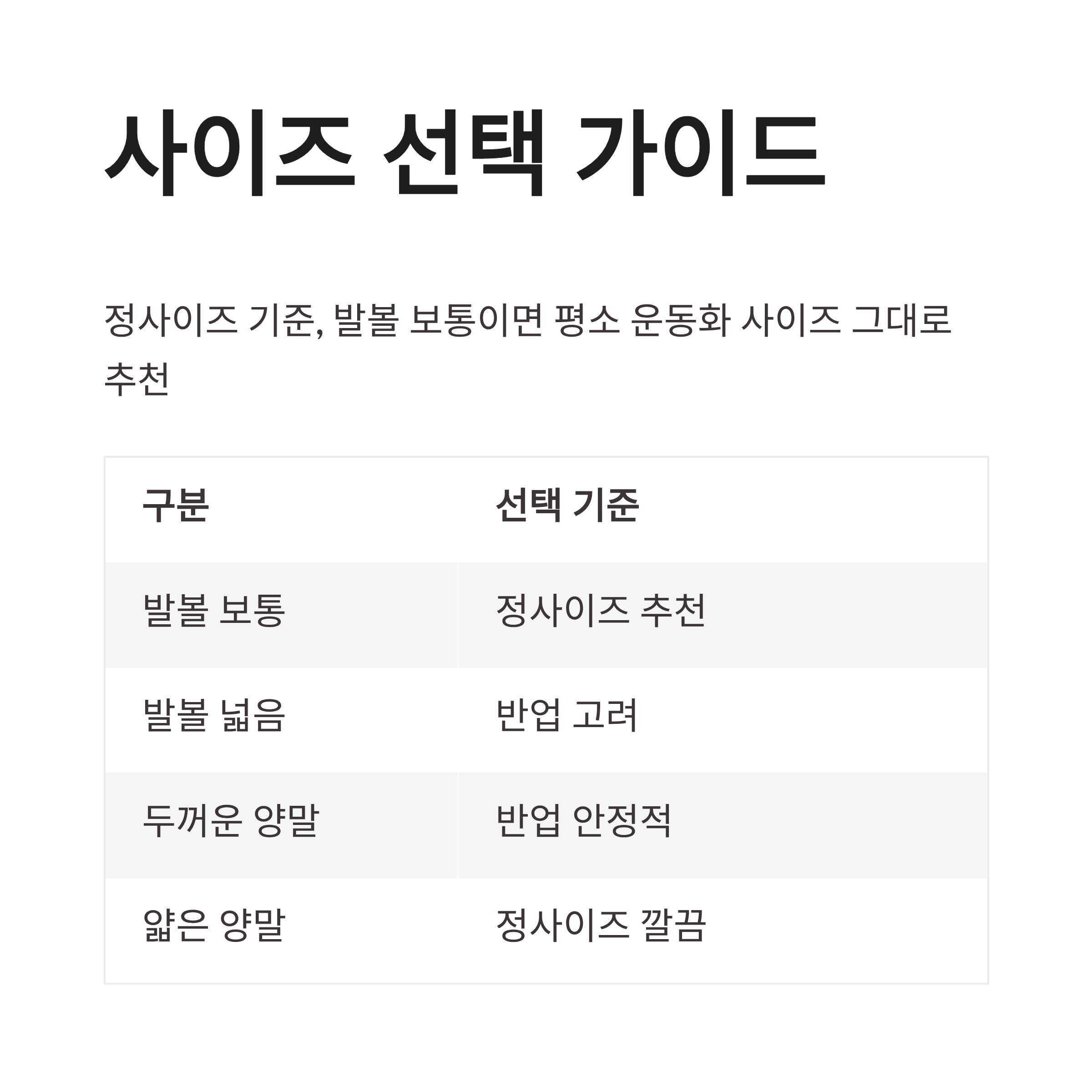 | 발볼 보통 | 정사이즈 추천 |