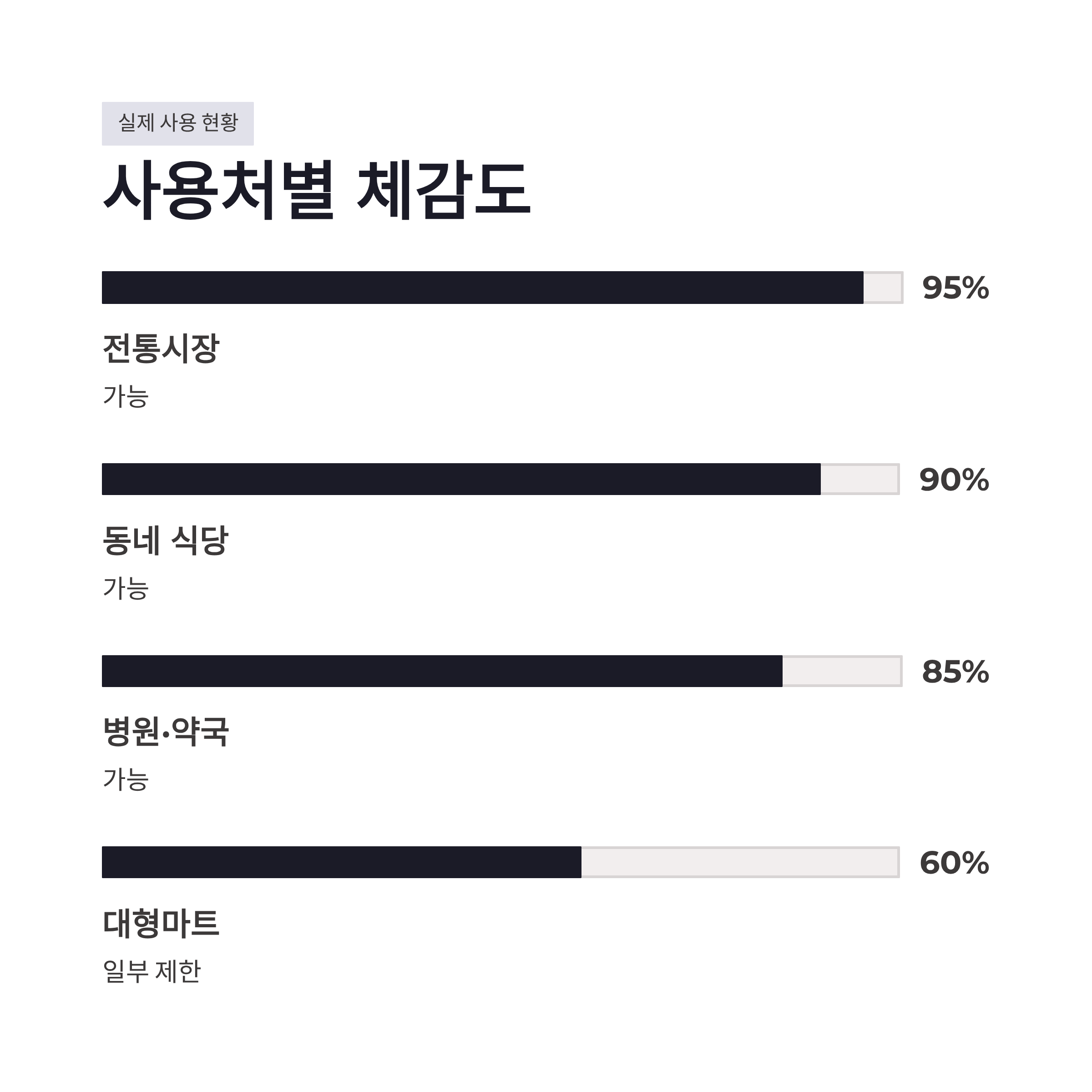 | 전통시장 | 가능 | 할인 체감 가장 큼 |