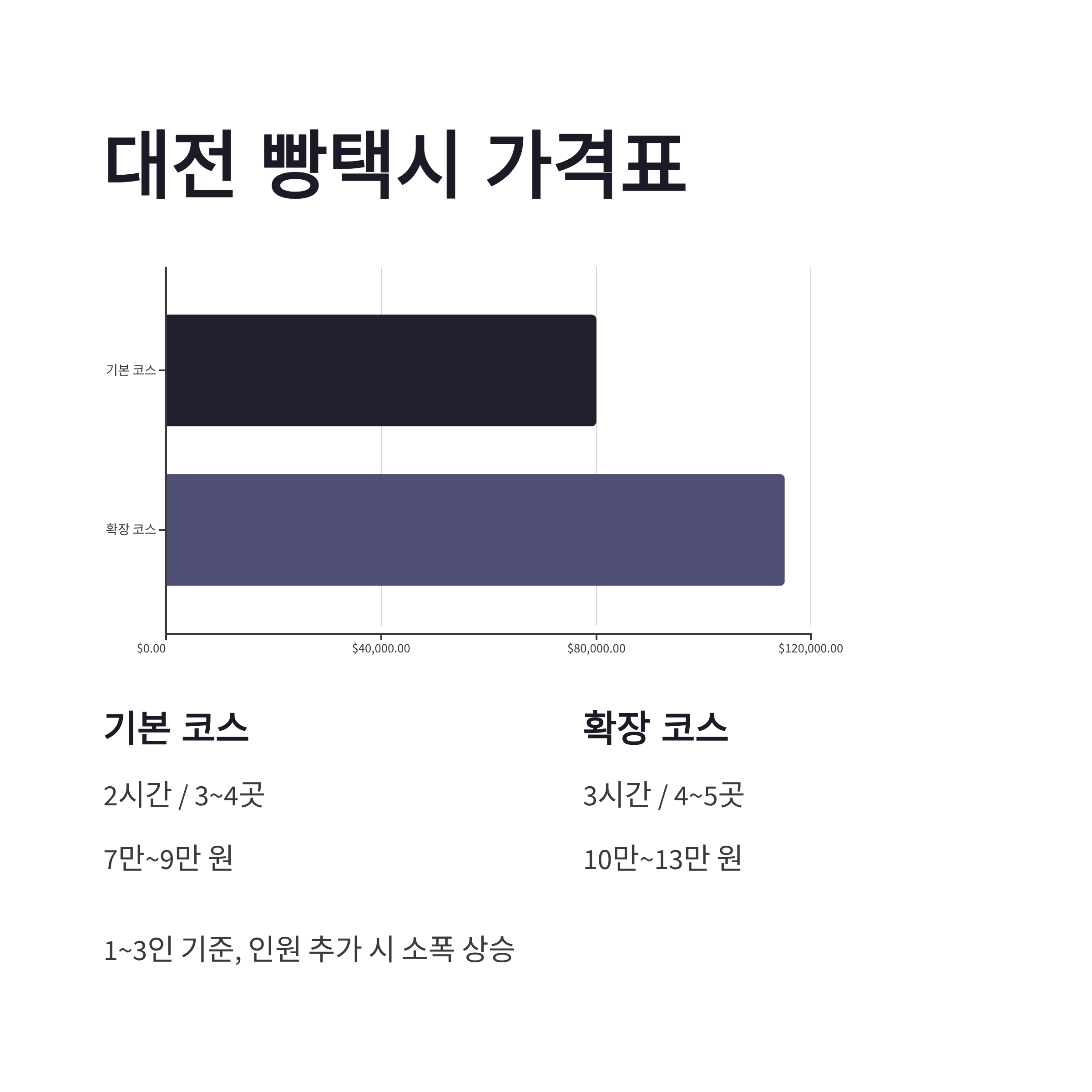| 확장 코스 | 3시간 / 4~5곳 | 10만~13만 원 |