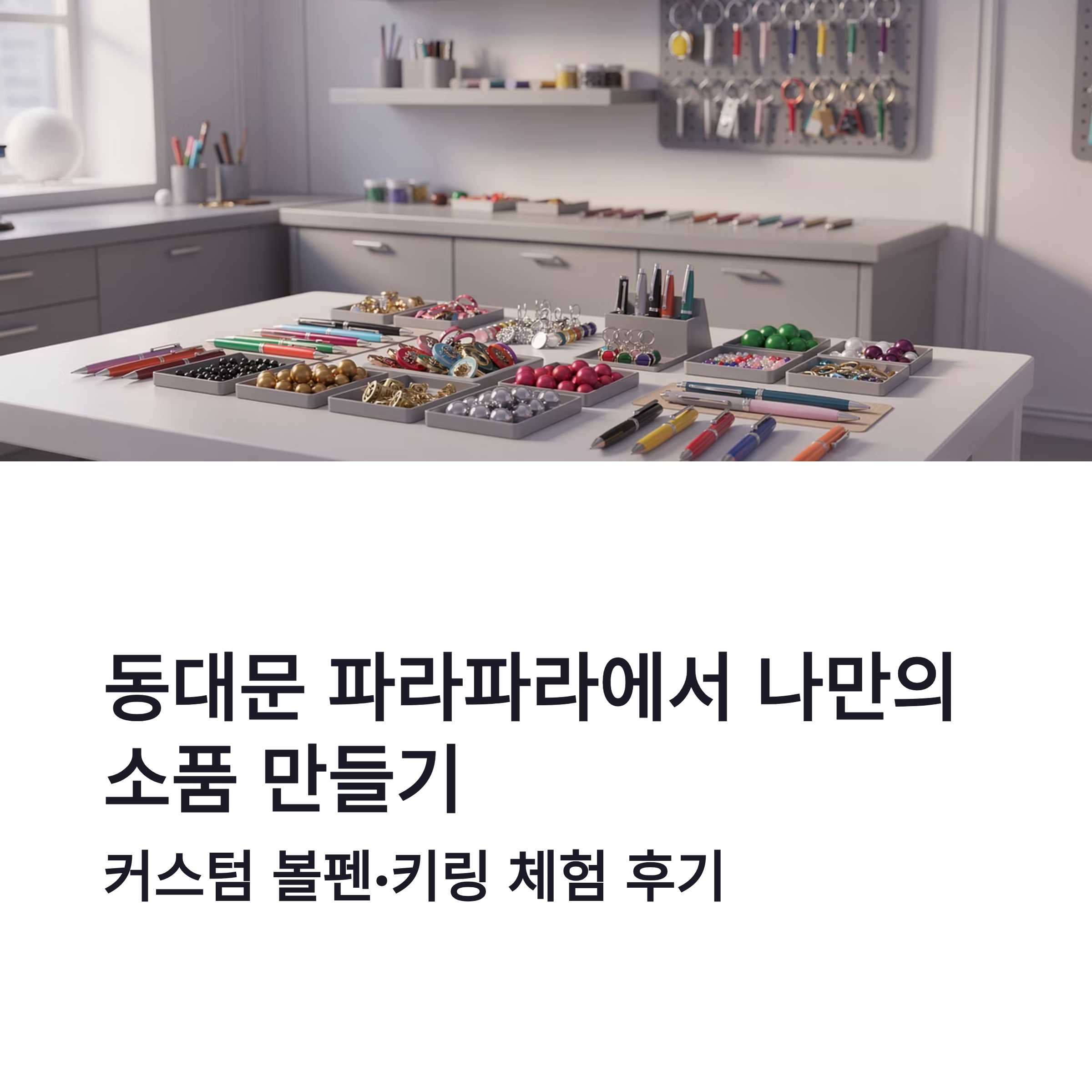 요즘 동대문 파라파라 얘기 은근히 많이 들리더라구요. 평범한 볼펜 하나도 내가 고른 색이랑 부자재로 꾸미면 완전 다른 물건이 되는데, 이게 은근 중독입니다 ㅎㅎ 동대문 파라파라는 동대문종합시장 안쪽에 있어서 처음엔 좀 헤맸는데, 막상 도착하니 진짜 눈 돌아가요. 반짝이 파츠, 알파벳 비즈, 컬러 스프링까지 없는 게 없더라구요. 저는 여기서 커스텀 볼펜을 만들었는데요, 솔직히 말해서 처음엔 “이게 재밌을까?” 했거든요? 근데 하나 만들고 나니까 아 이거 또 만들고 싶다 싶더라구요. 내가 직접 고른 조합이라 그런지 괜히 애착도 생기고, 선물용으로도 딱이었어요. 동대문 파라파라에서 느낀 건, 잘 만든 물건보다 내가 만든 물건이 더 좋다는 거였구요!