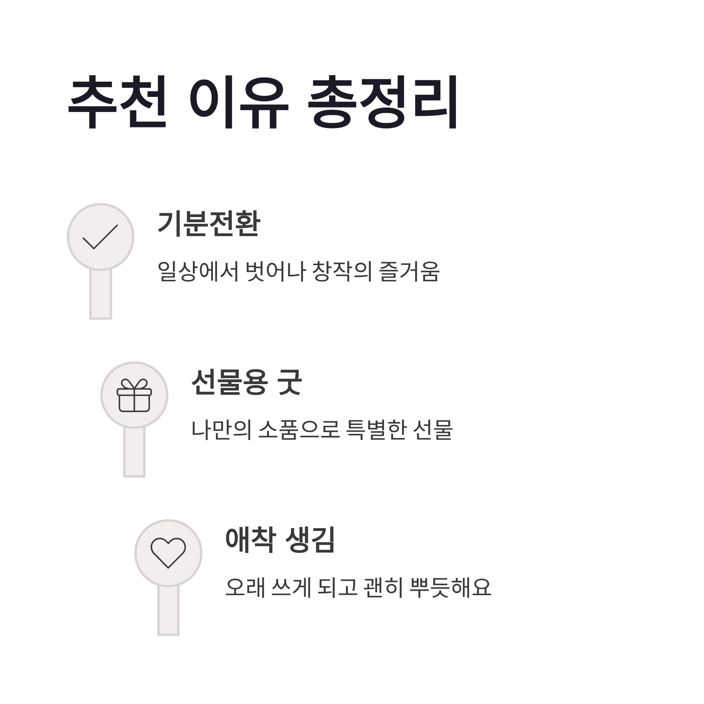 | 소요 시간 | 10~20분 | 고르다 보면 시간 순삭 |
