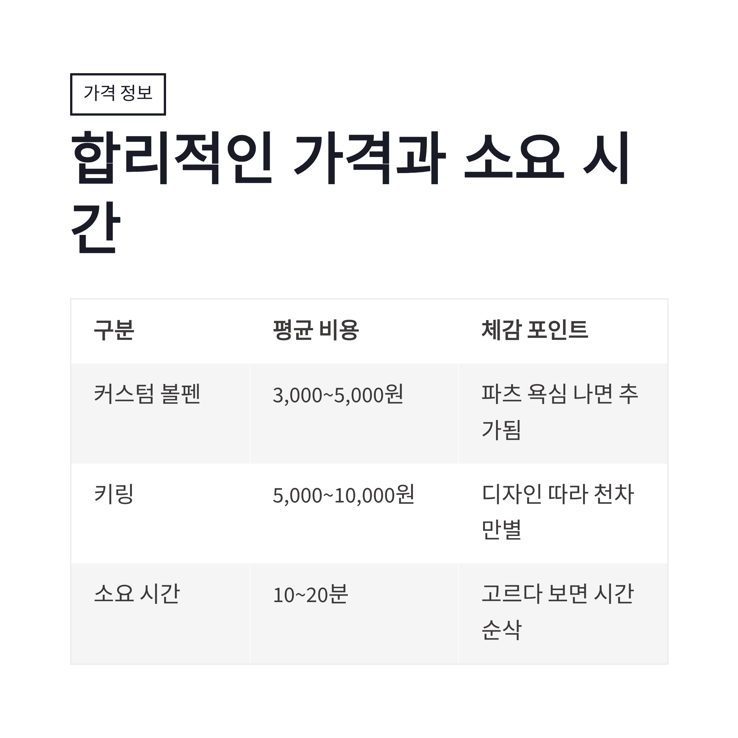 | 키링 | 5,000~10,000원 | 디자인 따라 천차만별 |