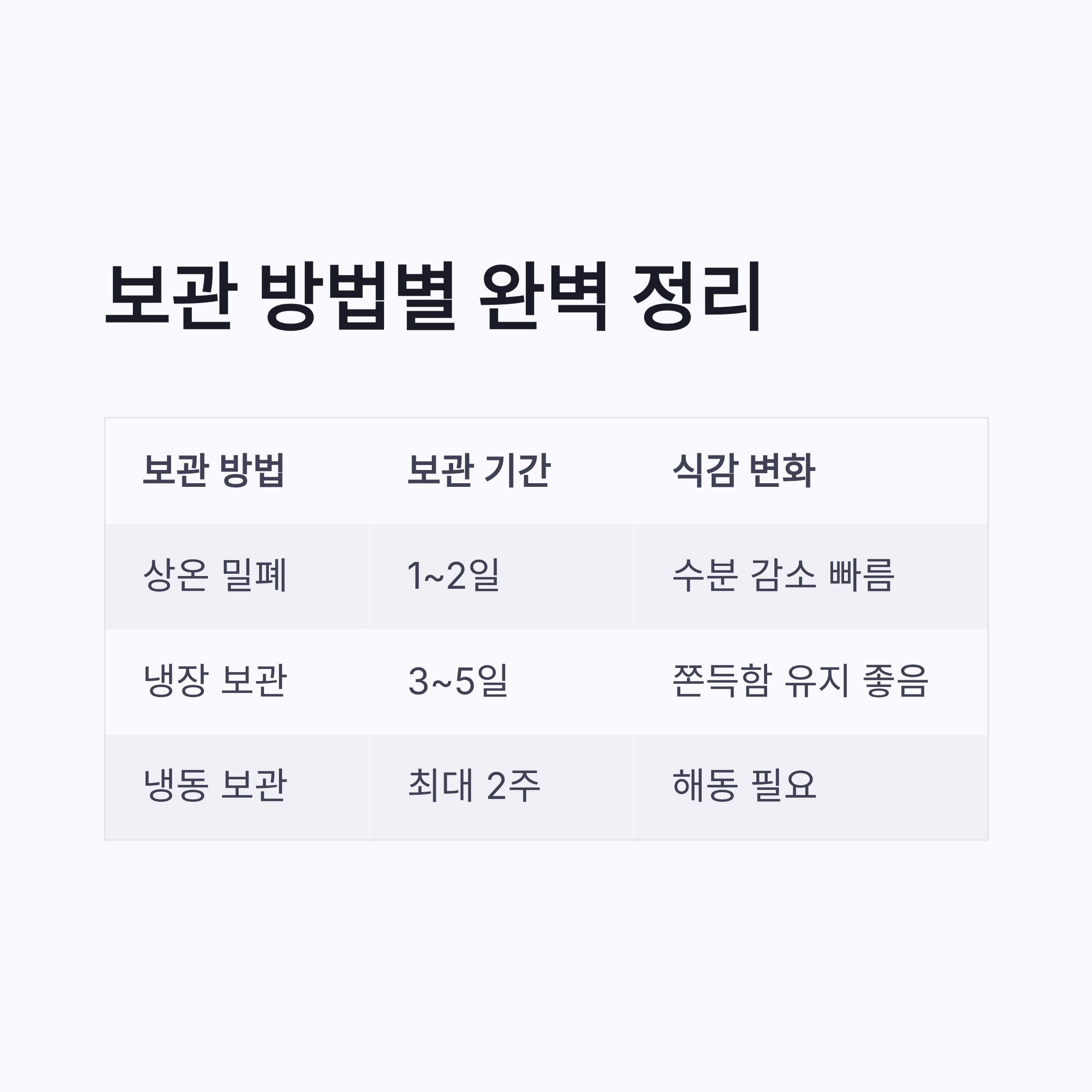 | 보관 방법 | 보관 가능 기간 | 식감 변화 |