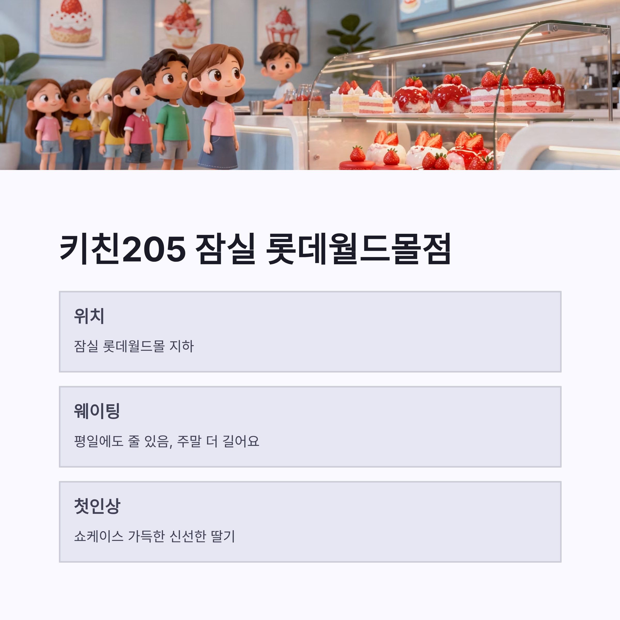 키친205 잠실 롯데월드몰점 딸기 디저트 첫인상