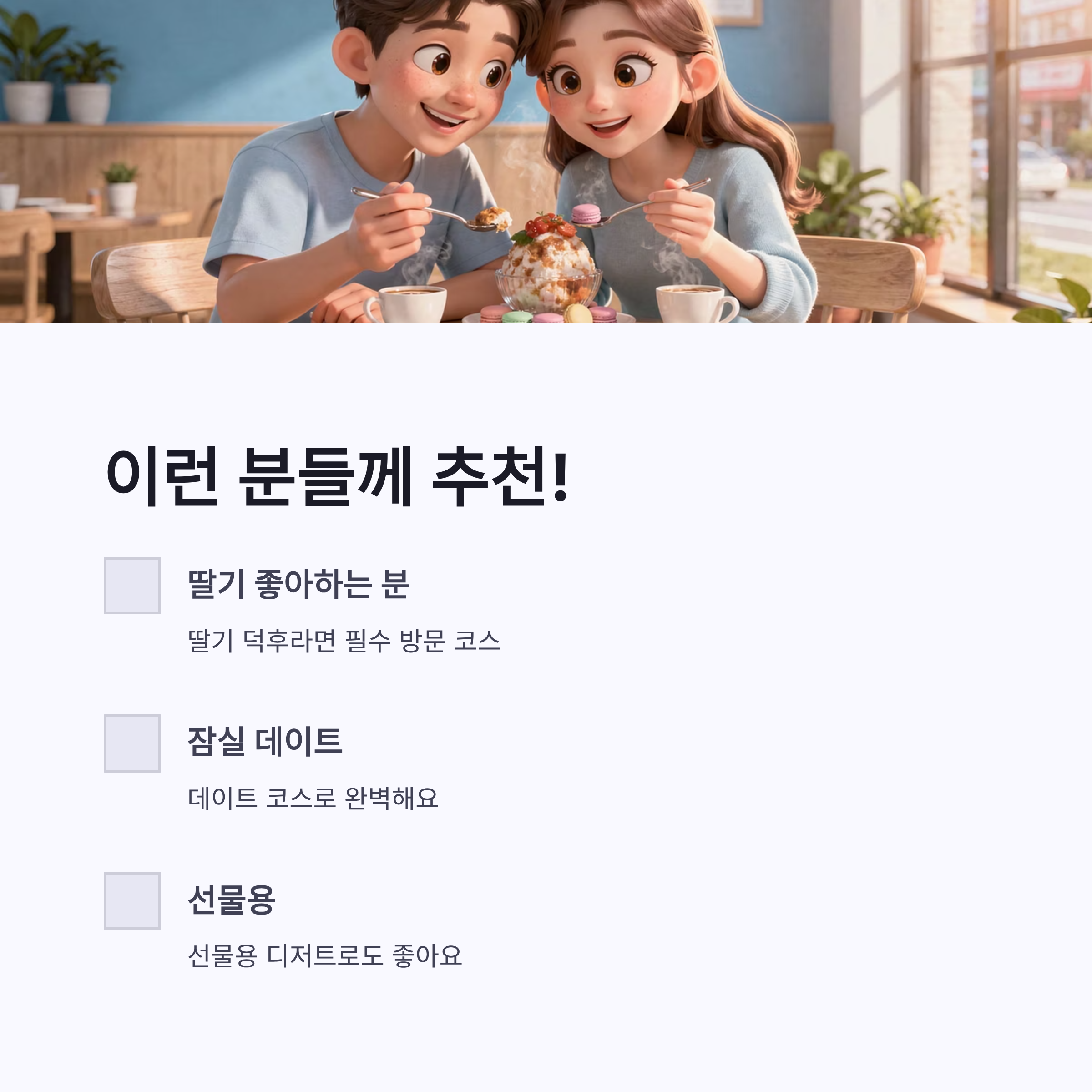 제가 제일 고민했던 건 메뉴 선택이었어요. 다 딸기라서 더 헷갈림ㅠㅠ 직원분 추천도 참고해서 몇 개 골라봤는데, 확실히 인기 메뉴는 이유가 있더라구요. 실제로 먹어보고 느낀 걸 기준으로 정리해봤어요.