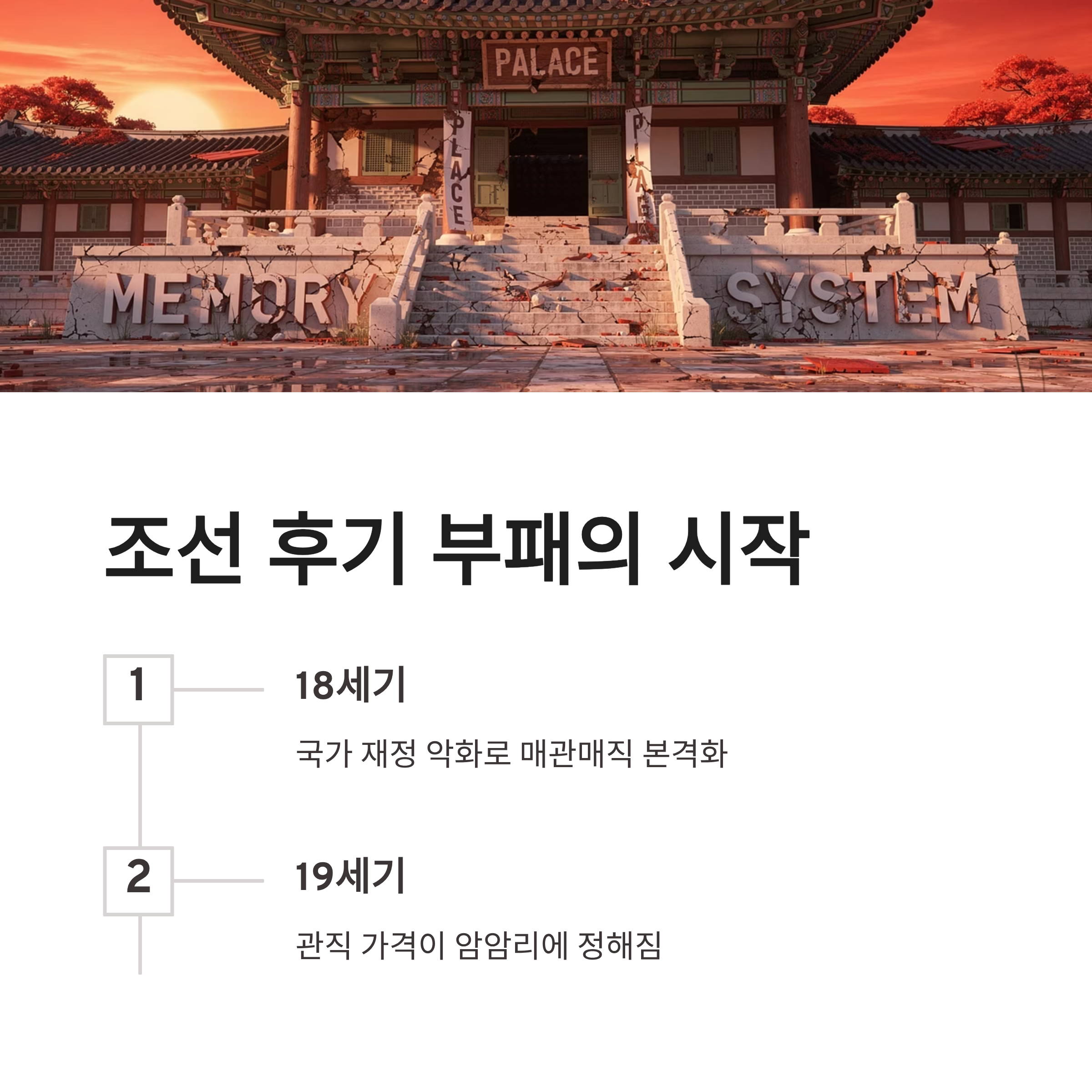 저도 이 자료 정리하면서 좀 씁쓸했어요. 매관매직 하나가 사회 전체를 무너뜨리는 시작점이었구나 싶더라구요. 연관 키워드로는 *조선 부패, 탐관오리, 관직 매매* 같은 말들이 자연스럽게 따라옵니다.