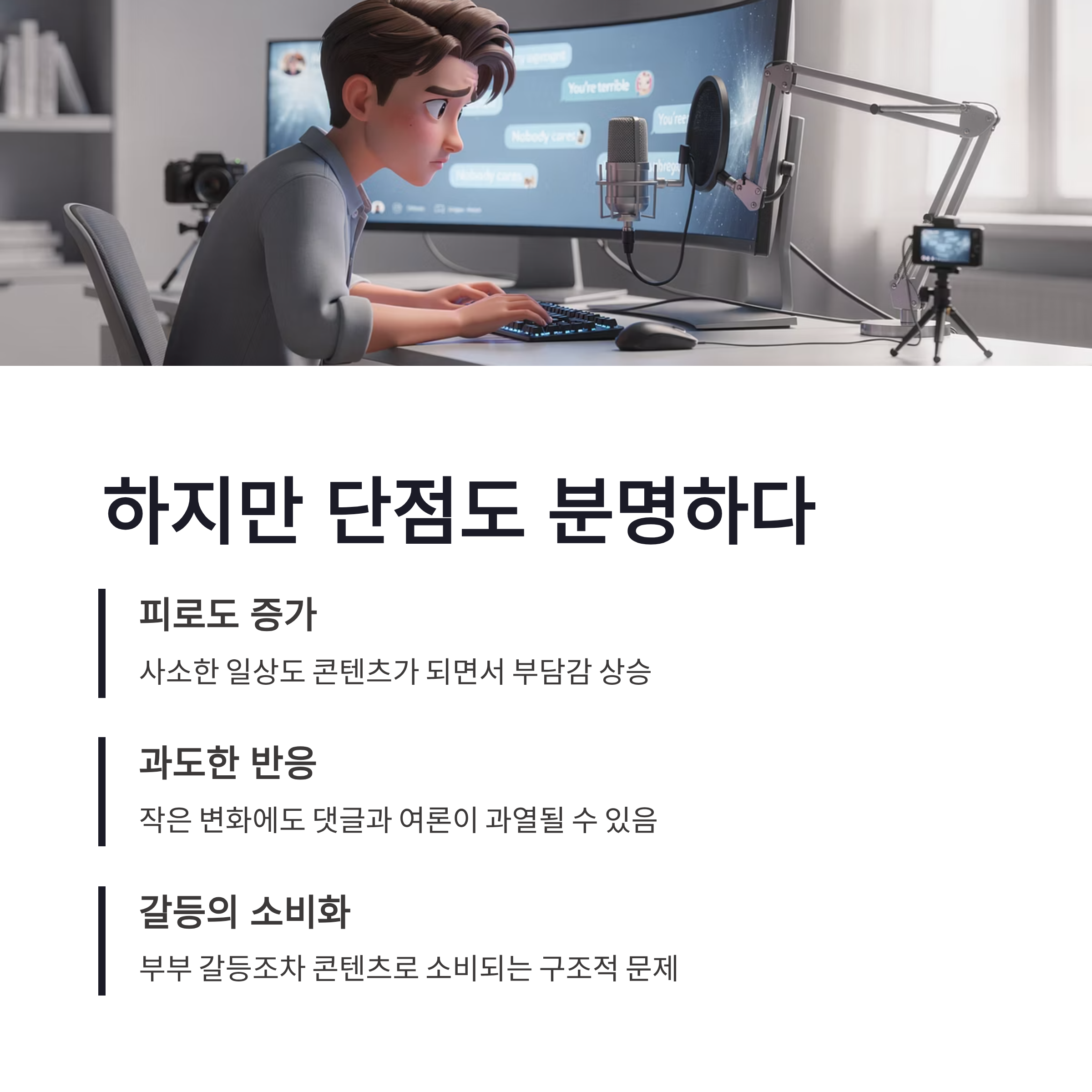 솔직히 말해서 유튜브 BJ 커플 결혼은 장점도 많고 단점도 분명합니다. 장점부터 보면, 스토리가 생기고 팬층이 더 단단해져요. “같이 커온 커플” 서사가 만들어지거든요. 반면 단점은… 피로도죠 ㅠㅠ 사소한 일상도 콘텐츠가 되다 보니, 작은 변화에도 반응이 과해질 수 있습니다. 요즘은 댓글 문화도 예전보다 훨씬 날카로워서, 부부 갈등조차 소비되는 구조가 부담이 될 수도 있구요. 박민정 송형주 결혼 역시 이런 양면성을 동시에 안고 가는 케이스로 보였습니다.