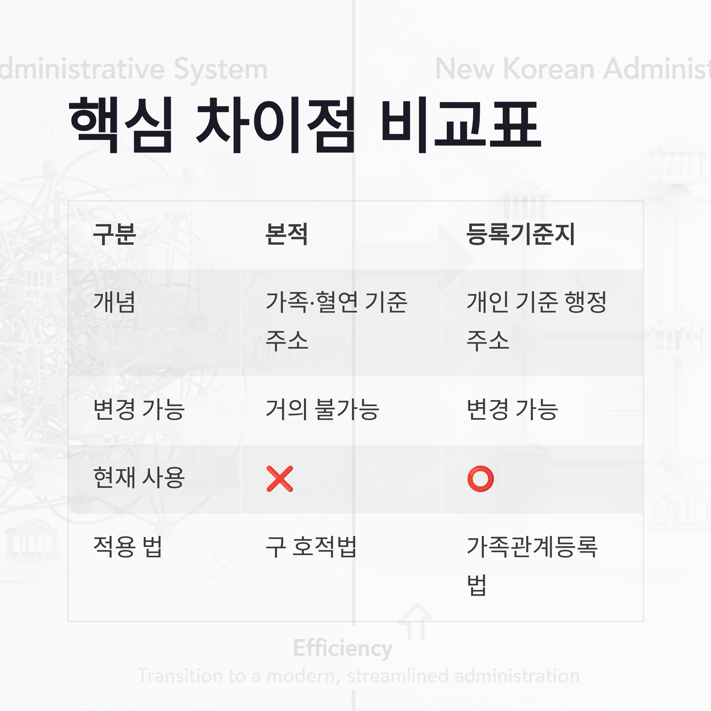 본적과 등록기준지 차이는 여기서 확 갈립니다. 본적이 사라진 뒤 등장한 게 바로 등록기준지인데요, 이건 개인이 자유롭게 정할 수 있는 주소 개념이에요. 꼭 출생지일 필요도 없고, 현재 거주지랑 달라도 됩니다. 제가 실제로 서류 정리하다가 느낀 차이를 표로 정리해보면 이렇더라구요.