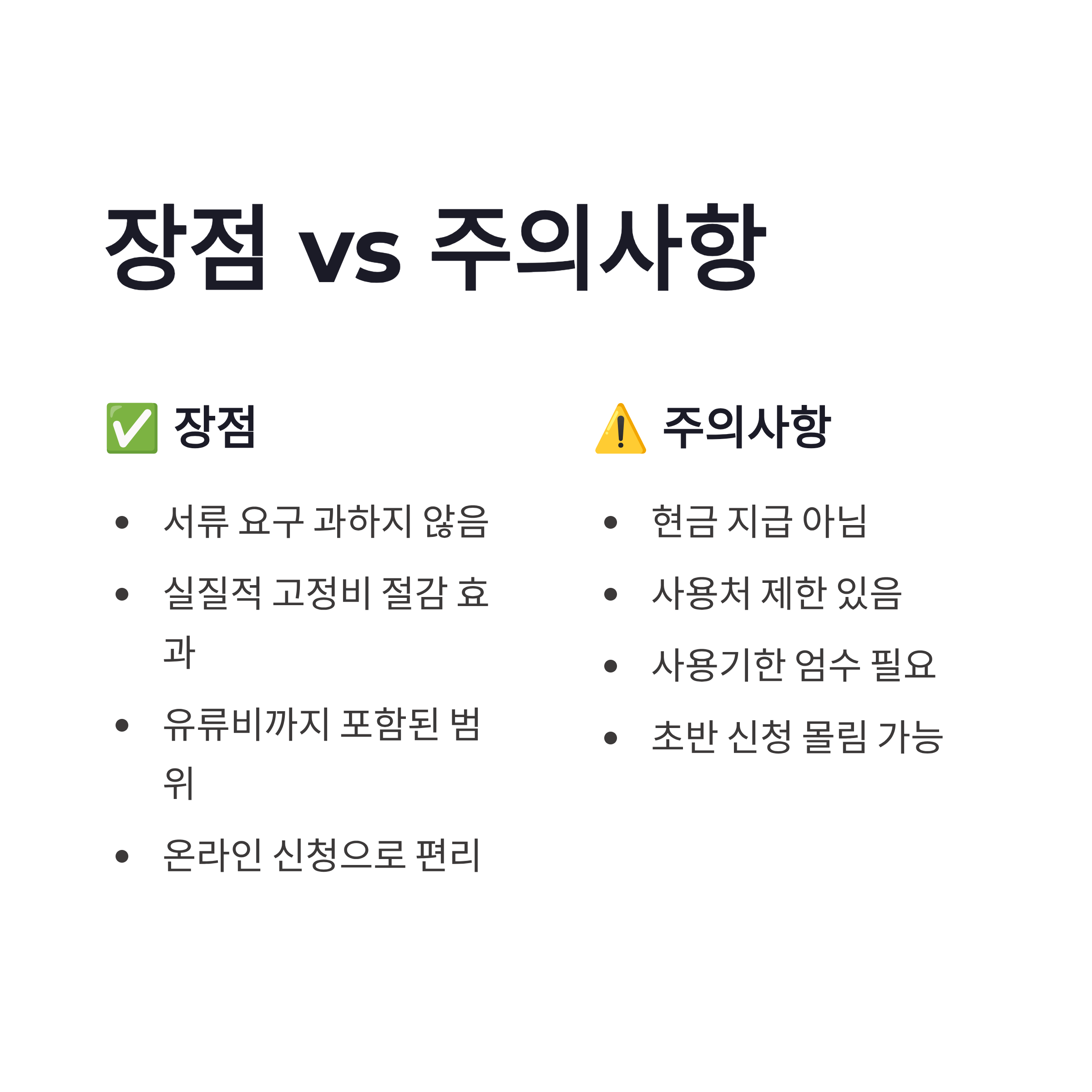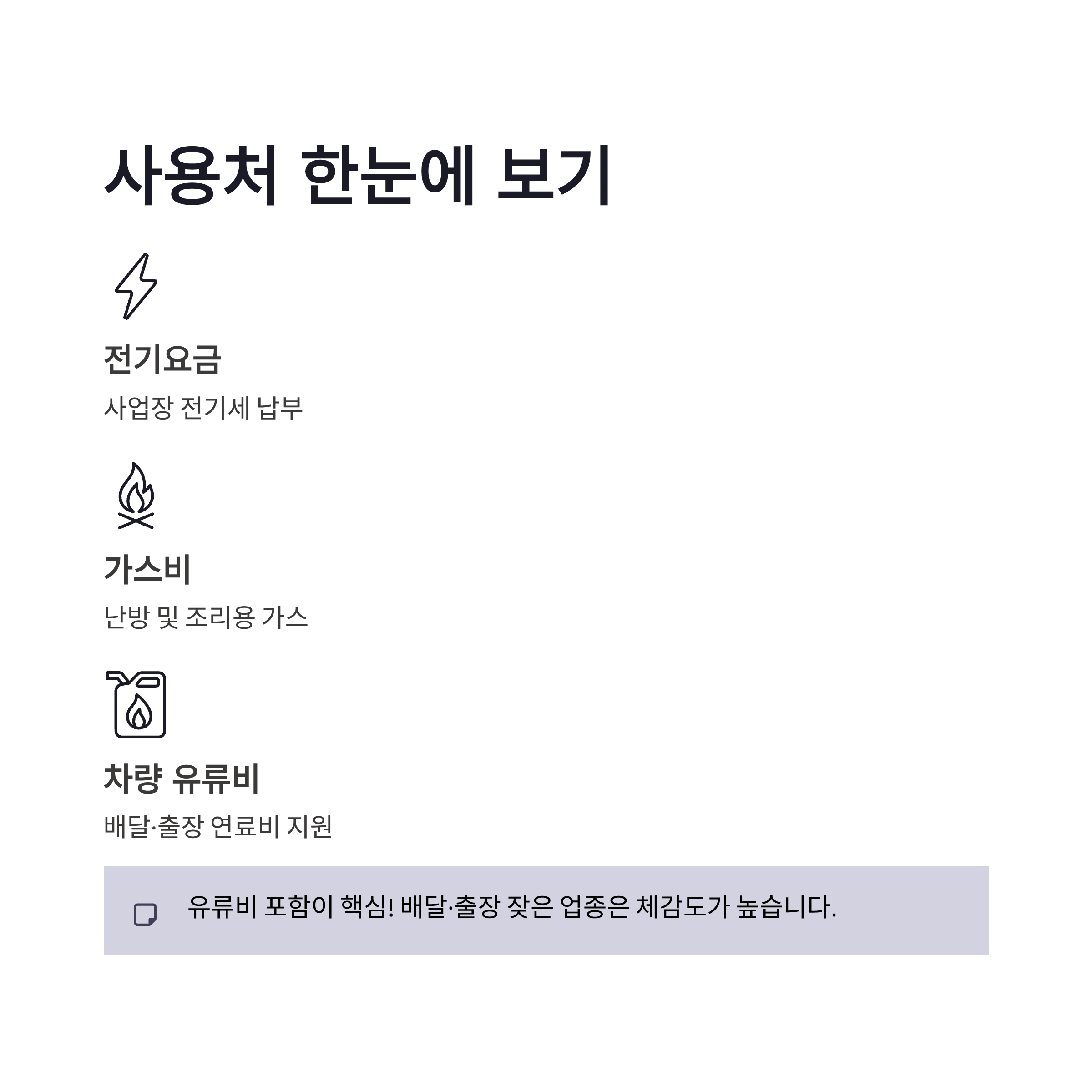 | 사용처 | 전기요금, 가스비, 차량 유류비 등 |