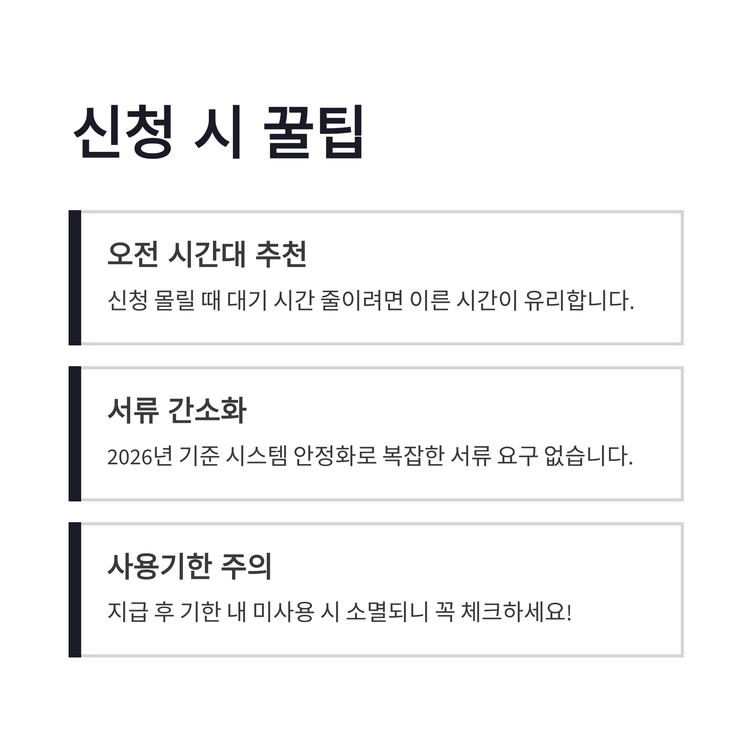신청은 생각보다 단순했어요. 소상공인24 사이트에서 공동인증서만 있으면 거의 바로 진행됩니다. 사업자등록번호 입력 → 자격 확인 → 신청 완료, 이 흐름이에요. 2026년 기준으로 시스템 안정화가 꽤 잘 돼 있어서 예전처럼 튕기거나 대기 걸리는 느낌은 덜했어요. 다만 초반엔 신청 몰리면 느려질 수 있으니, 가급적 오전 시간대가 낫더라구요. 개인적으로 느낀 장점은 “서류 요구가 과하지 않다”는 점이었고, 단점이라면 지급 후 사용기한이 정해져 있어서 미루면 날아갈 수 있다는 점… 이건 진짜 조심해야겠더라구요 ㅠㅠ