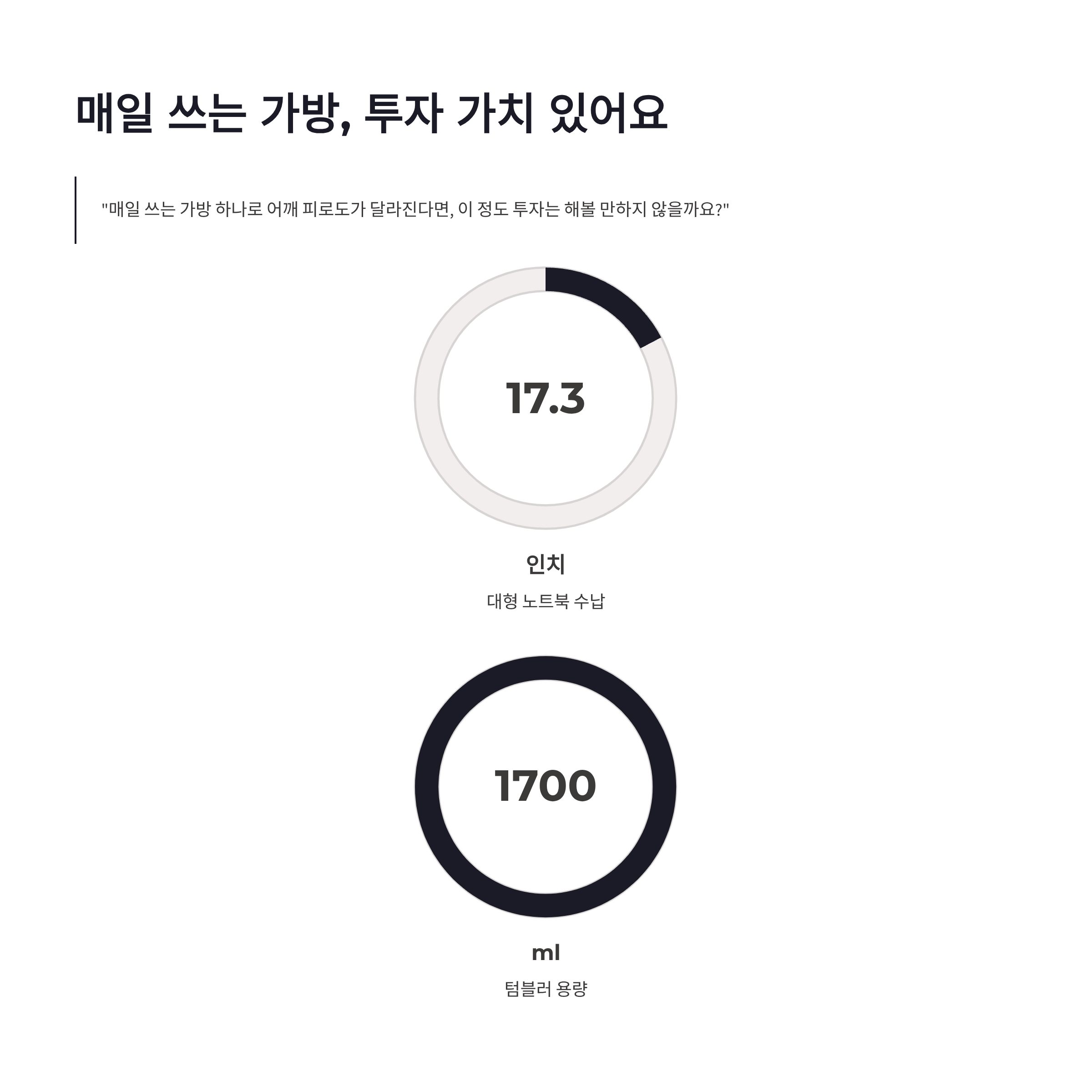 | 텀블러 1700ml | 옆 포켓 수납 | 흔들림 적음 |