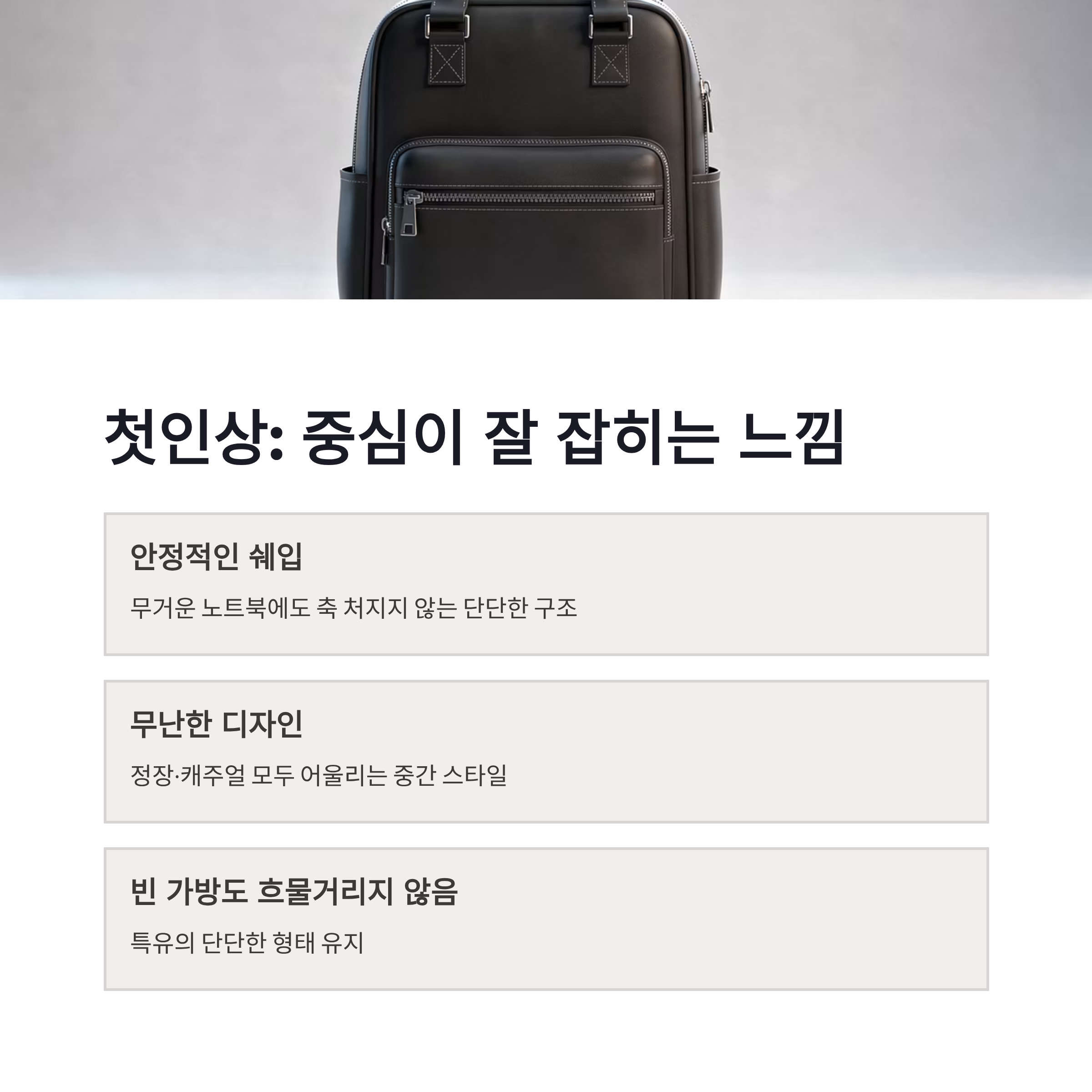 솔직히 출근길마다 노트북에 충전기, 서류, 텀블러까지 넣다 보면 어깨가 먼저 반응하잖아요. 저도 그래서 가방을 몇 번이나 바꿨는데요, 에버키 오닉스 EKP132S17 백팩은 처음 멨을 때 느낌이 좀 달랐습니다. 무거운 노트북이 들어갔는데도 가방이 축 처지지 않고 중심이 잘 잡히더라구요. 디자인도 과하게 튀지 않아서 정장, 캐주얼 다 무난했고요. 무엇보다 에버키 오닉스 EKP132S17 백팩 특유의 단단한 쉐입 덕에 빈 가방일 때도 흐물거리지 않는 점이 마음에 들었습니다. 출근용으로 너무 캐주얼한 건 싫고, 그렇다고 딱딱한 비즈니스 가방도 부담스러웠는데 딱 중간 느낌이었어요 ㅎㅎ