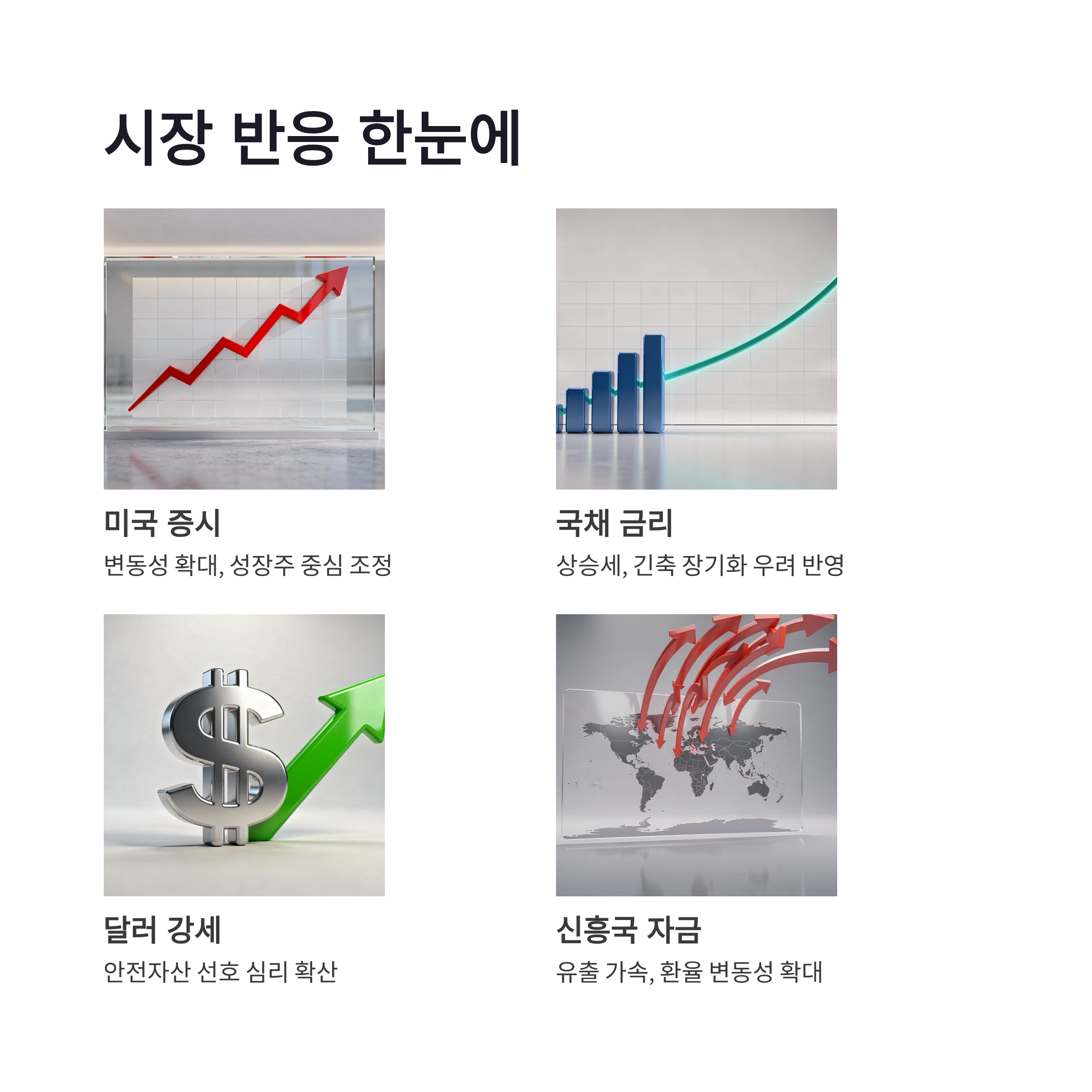 워시쇼크가 나오자마자 글로벌 자산 가격은 꽤 직관적으로 반응했습니다. 주식은 흔들리고, 채권 금리는 튀고, 달러는 강세로 기울었죠. 특히 기술주 쪽 변동성이 확 커졌는데요. 아래 정리하면 이런 흐름이었어요.