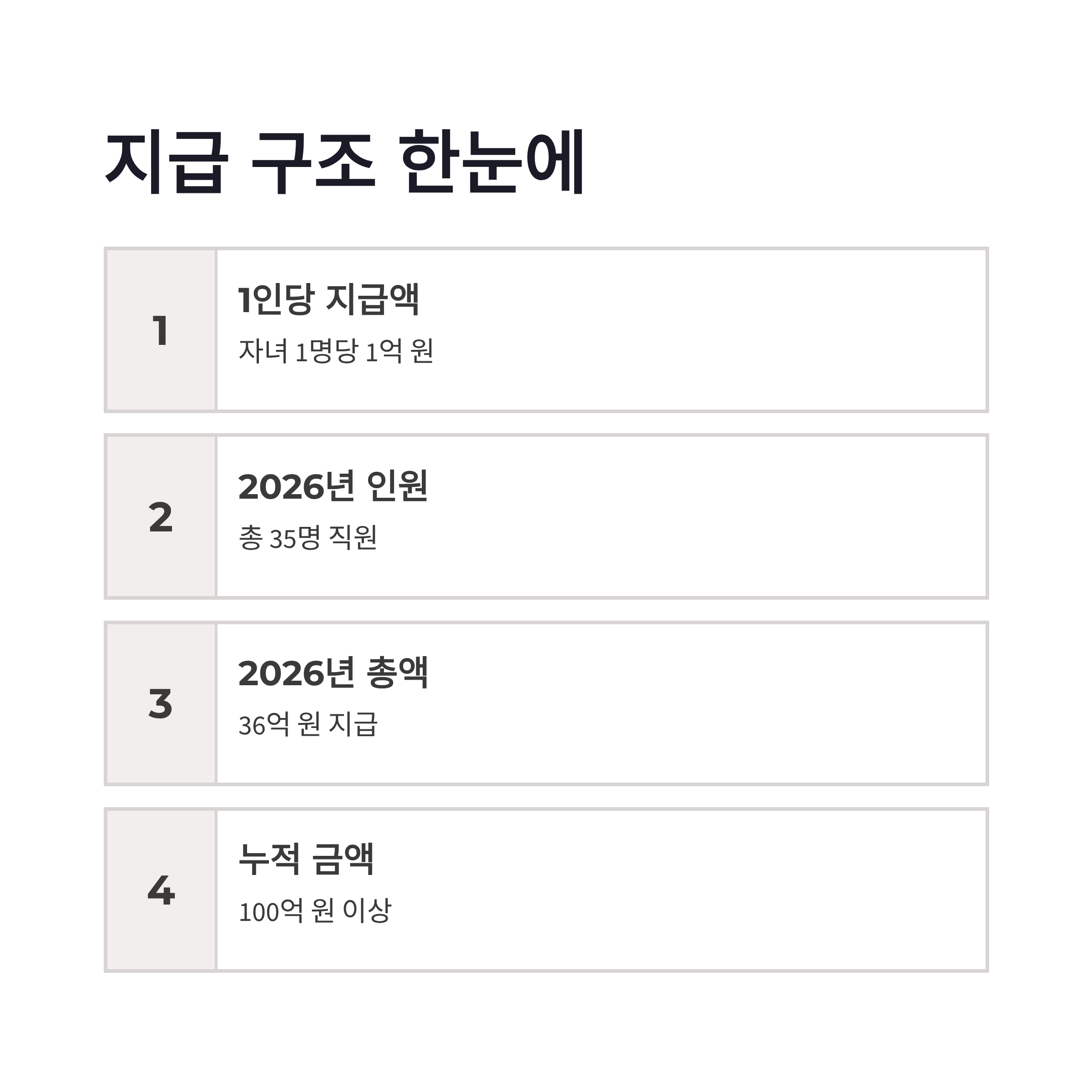 | 1인당 지급액 | 자녀 1명당 1억 원 |