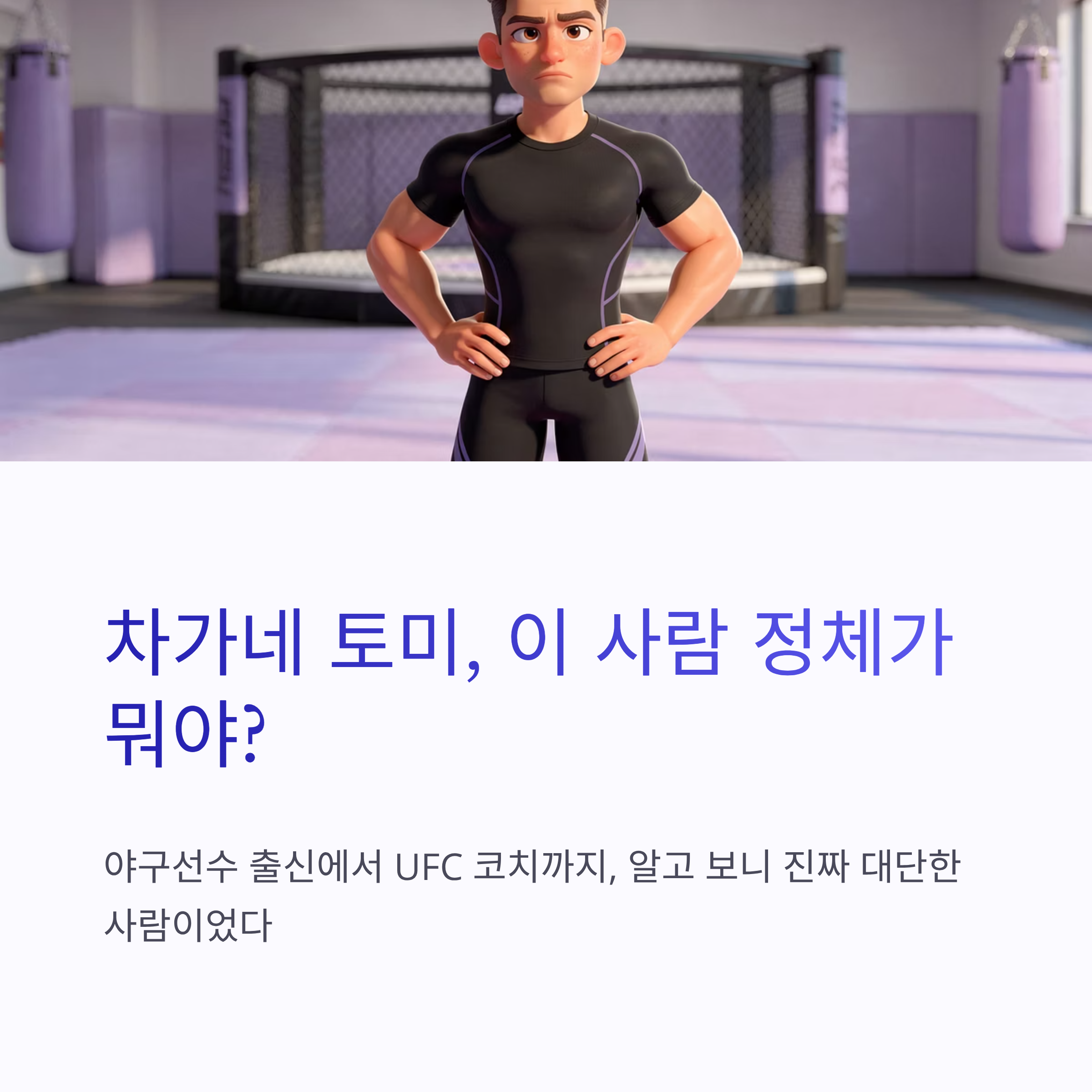 정리해보면 차가네 토미 정체는 단순한 예능 출연자가 아니라, 진짜 커리어가 있는 사람이라 더 설득력이 있었던 것 같아요. 야구 → 격투기 → UFC 코치, 이 루트 자체가 흔하지 않잖아요. 그래서 말 한마디, 행동 하나에도 이유가 느껴졌구요. 앞으로 차가네 계속 보다 보면 토미 존재감은 더 커질 것 같다는 느낌이 듭니다. 여러분은 어떠세요? 토미, 처음 봤을 때랑 지금 느낌 좀 달라졌나요?