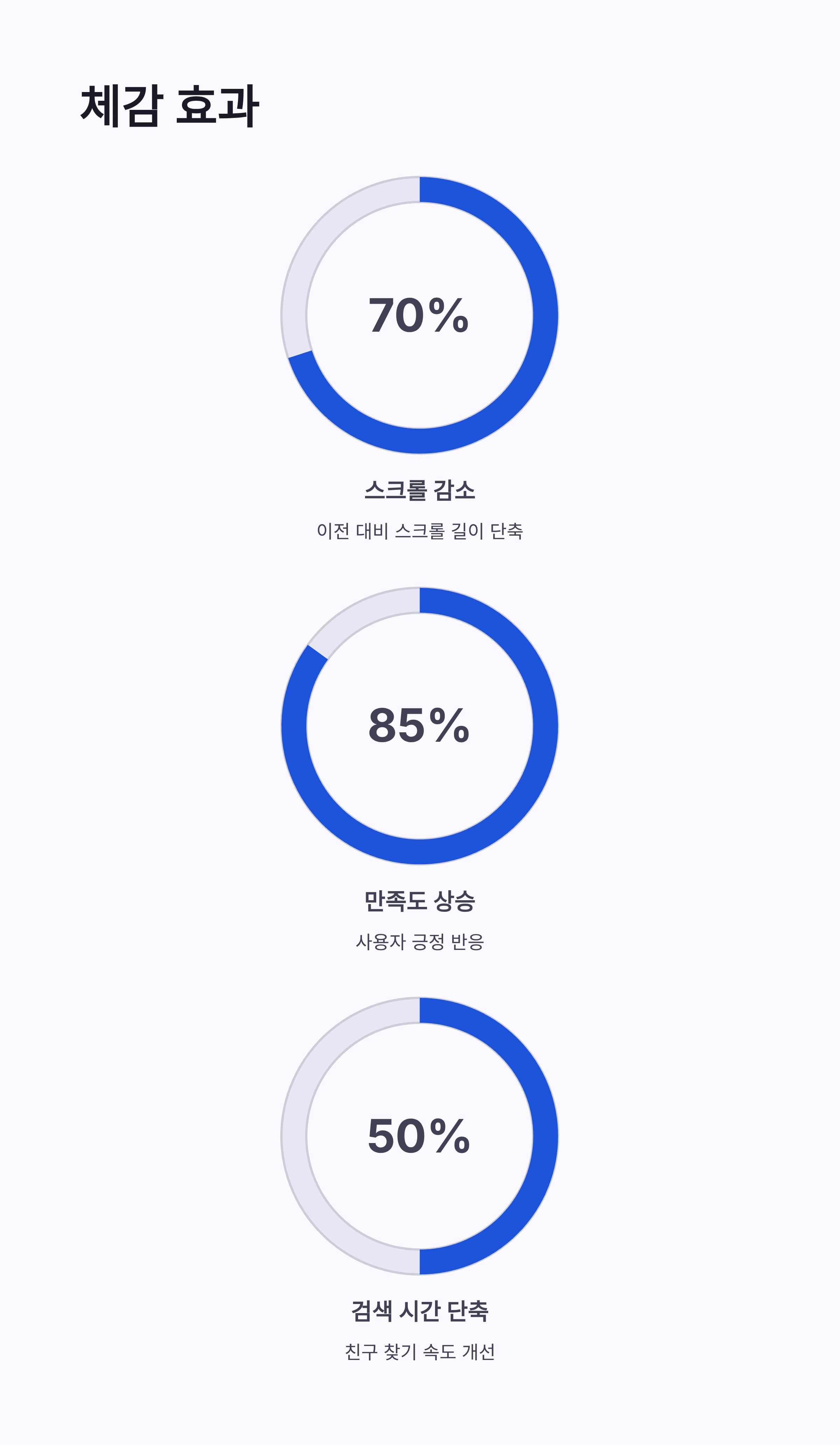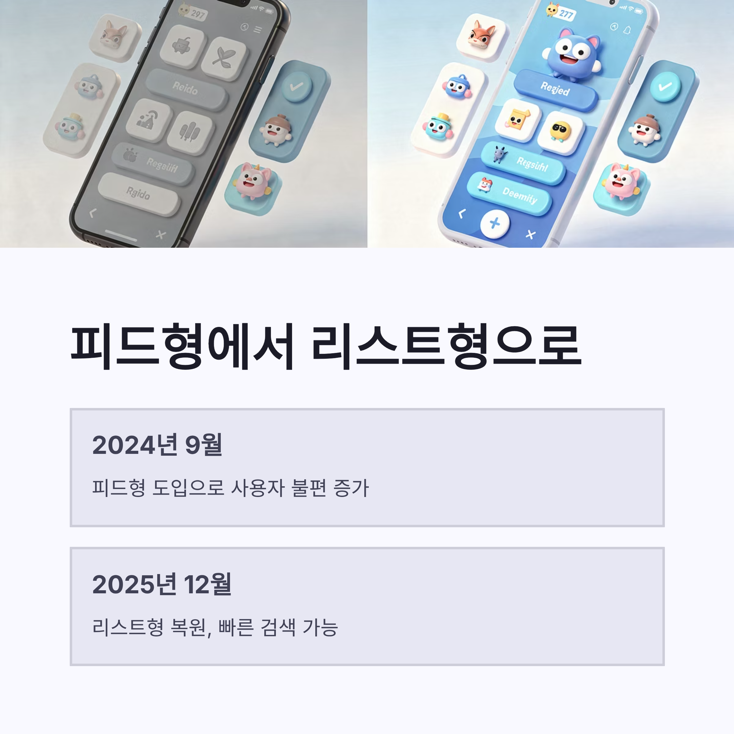 | 구분 | 피드형 친구탭 (이전) | 리스트형 친구탭 (현재) |