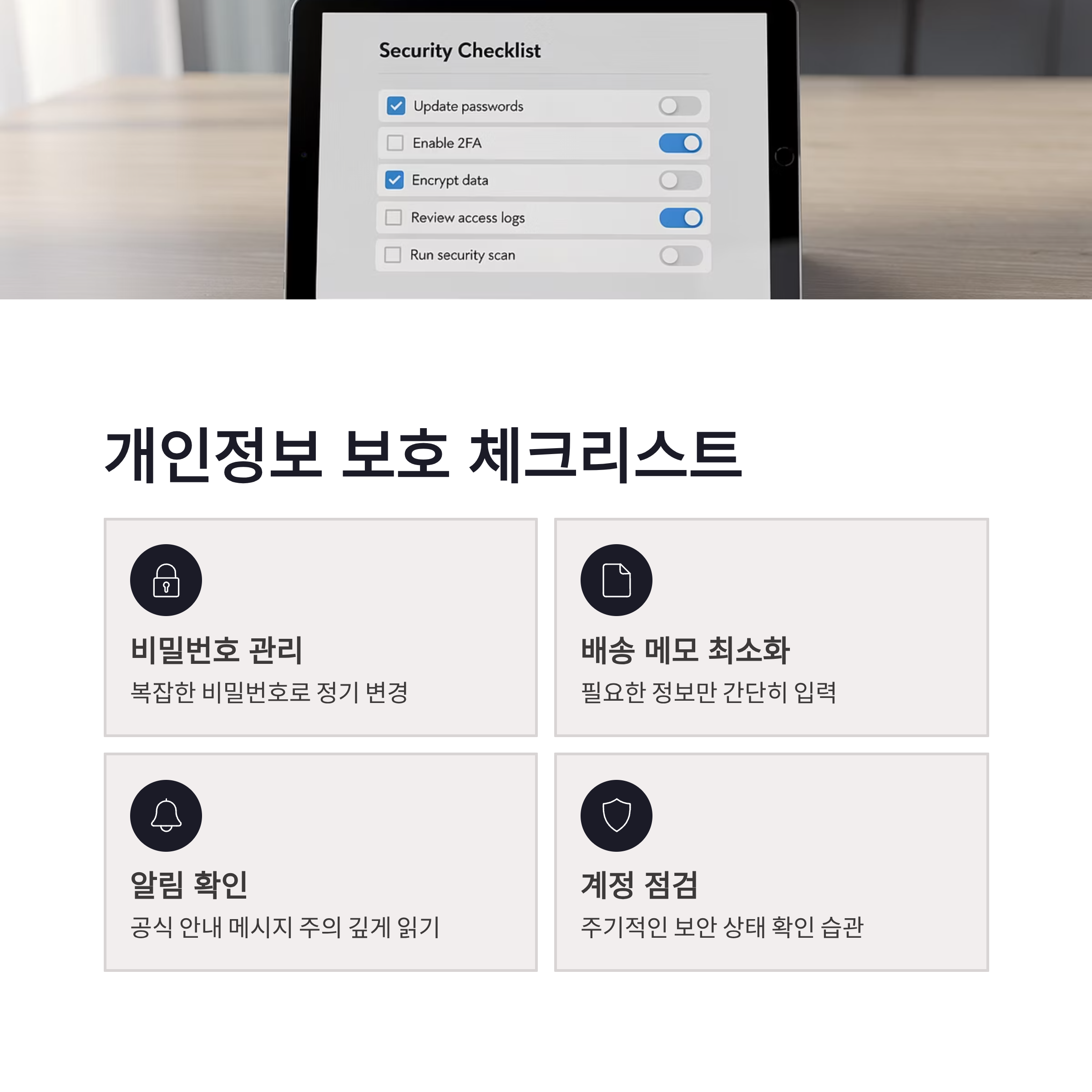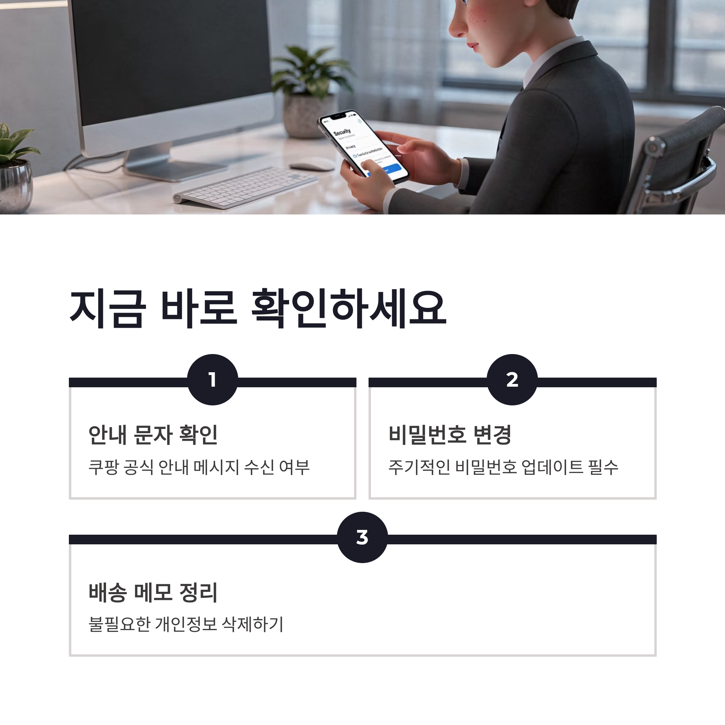 결론적으로 쿠팡 개인정보 유출 추가 확인은 새로운 사고가 아니라 기존 사고에서 확인 대상이 늘어난 케이스입니다. 그렇다고 가볍게 넘길 문제는 아니었구요. 안내 문자 확인하고, 비밀번호 주기적 변경, 배송 메모나 주소록성 정보 한 번 정리해두는 것만으로도 마음이 조금은 편해지더라구요. 이번 일을 계기로 저도 쿠팡 개인정보 유출 추가 확인 같은 소식 나오면 그냥 넘기지 않고, 계정 상태부터 한 번씩 들여다보는 습관이 생겼습니다. 이런 작은 체크가 결국 내 정보 지키는 최소한의 안전벨트 같았어요.