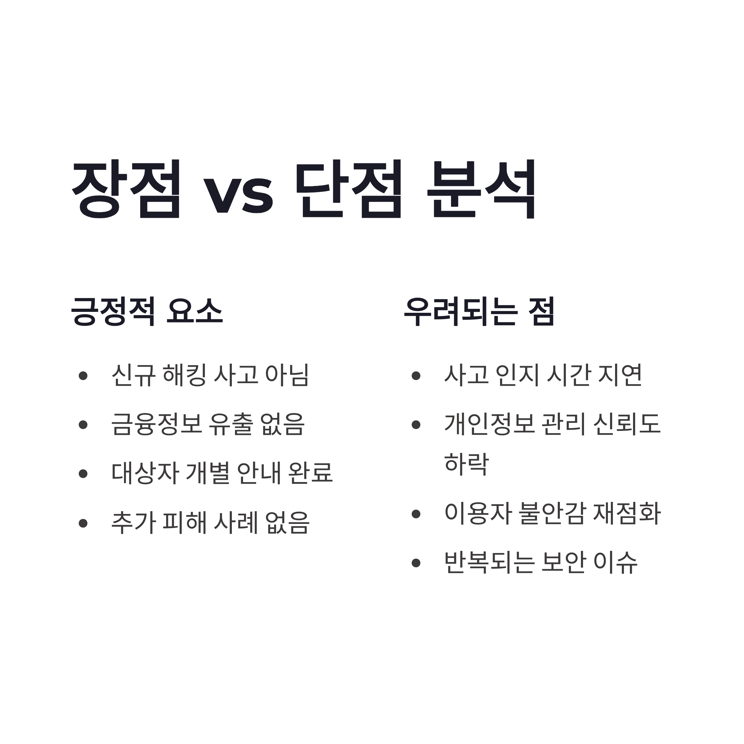 * 사고 인지까지 시간이 오래 걸림 * 개인정보 관리 신뢰도 하락 * 이용자 불안감 재점화