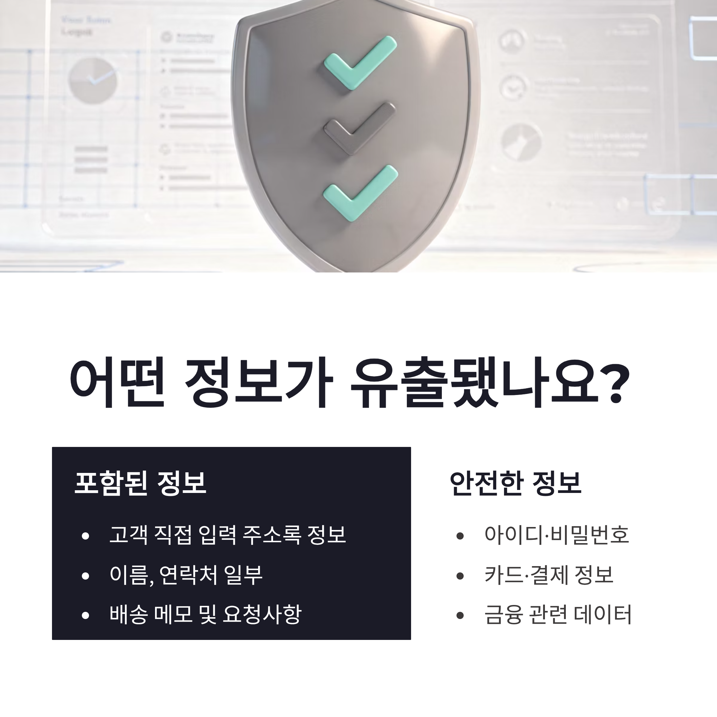 이번 쿠팡 개인정보 유출 추가 확인에서 가장 궁금한 건 결국 “그래서 뭐가 나간 거냐” 이 부분이죠. 쿠팡 공식 설명 기준으로 보면, 추가 확인된 정보는 고객이 직접 입력한 주소록성 정보였습니다. 이름, 연락처 일부, 배송 메모 같은 정보들이 여기에 포함됩니다. 다행히도 아이디·비밀번호·카드번호·결제정보 같은 핵심 금융정보는 포함되지 않았다고 명확히 밝혔습니다. 이건 꽤 중요한 포인트더라구요.