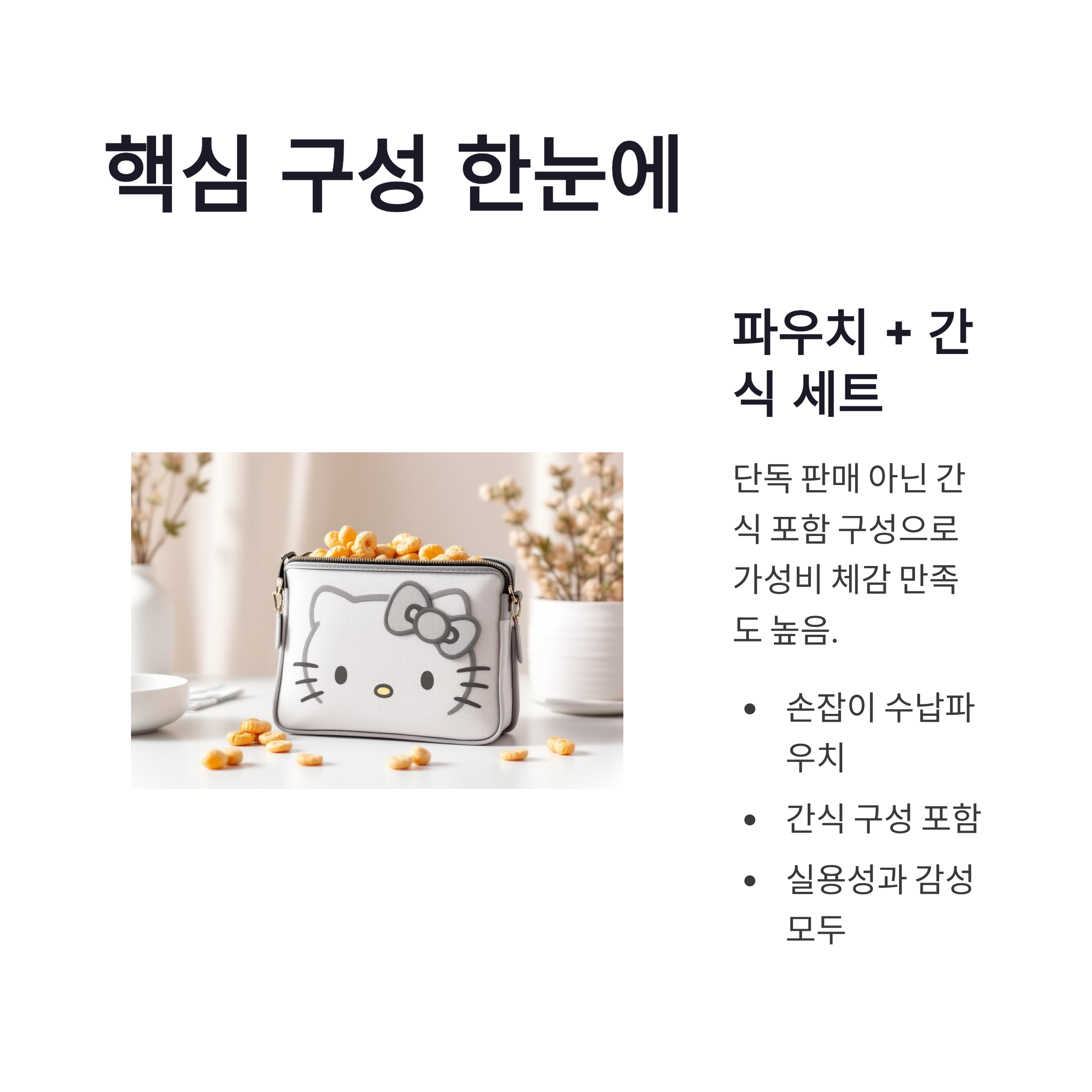 | 구성 | 손잡이 파우치 + 간식 구성 |