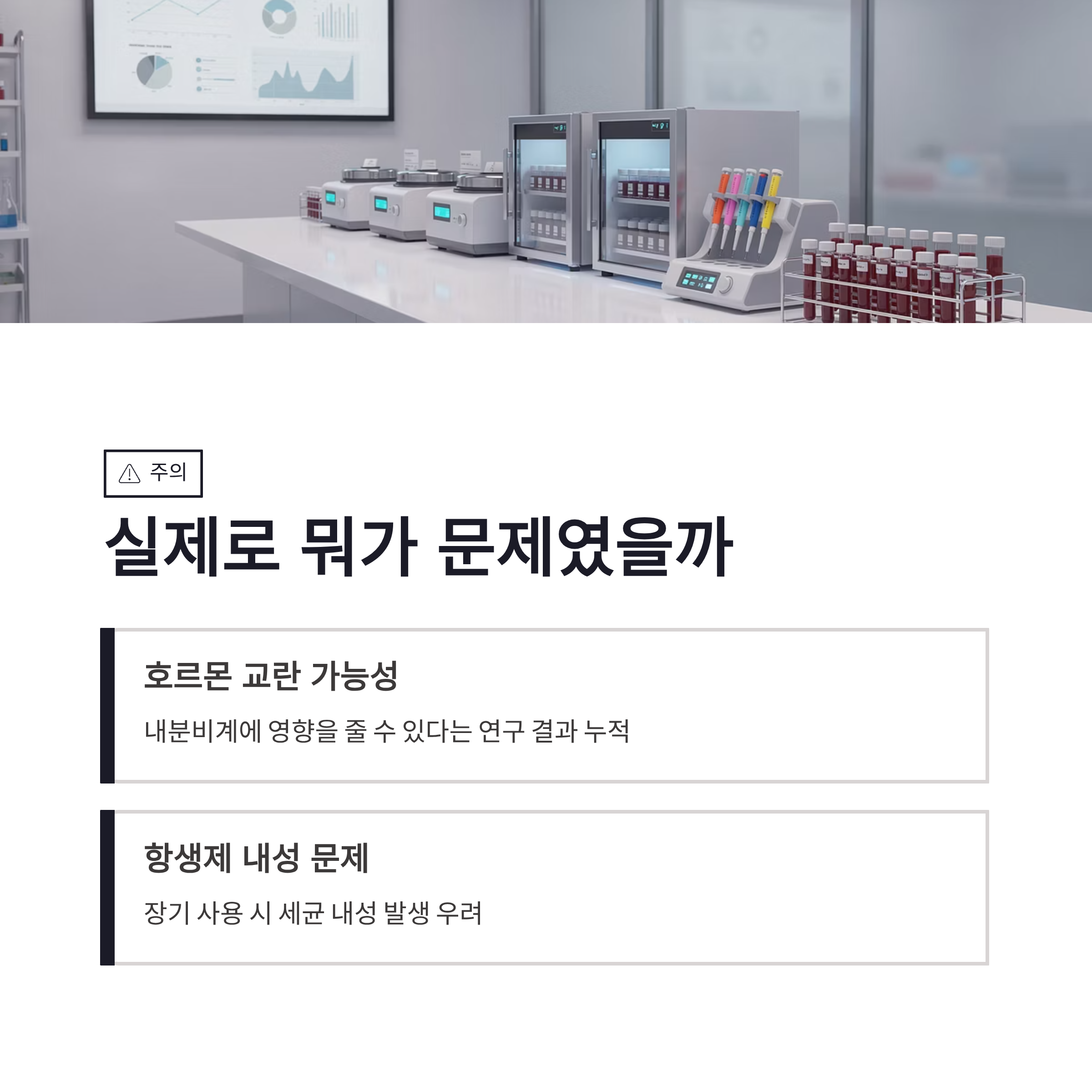 | 논란 포인트 | 호르몬 교란 가능성, 항생제 내성 |