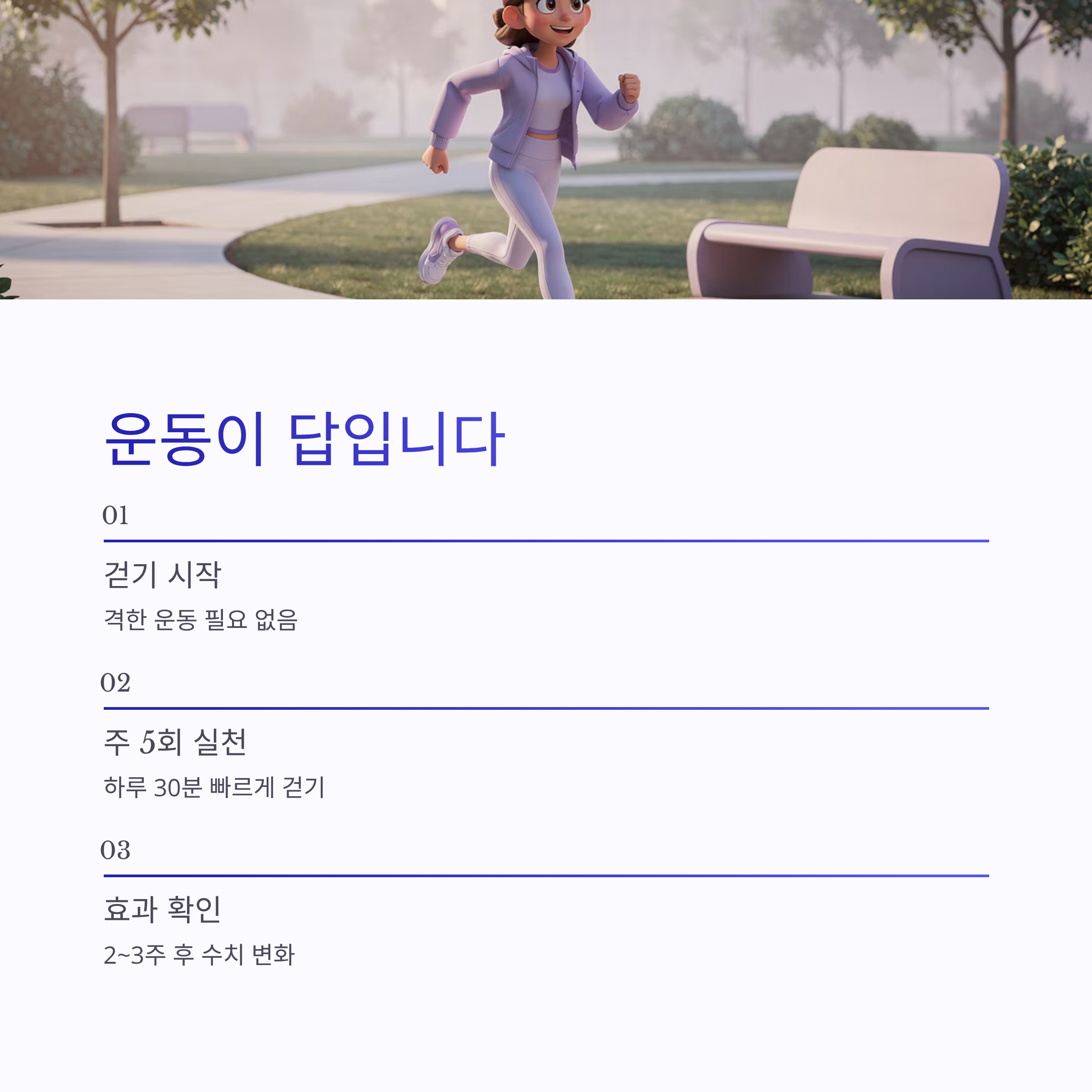 운동 얘기 나오면 다들 한숨부터 쉬죠 ㅎㅎ 저도 그랬구요. 근데 격한 운동 말고 걷기만 해도 충분하더라구요. 주 5회, 하루 30분 정도 빠르게 걷기만 했는데 2~3주 지나니까 수축기 혈압이 약 8~10mmHg 내려갔어요. 이건 실제로 연구 결과도 있대요(대한고혈압학회 2024). 장점은 꾸준히 하면 약처럼 효과가 누적된다는 거, 단점은… 귀찮음 ㅋㅋ 그래도 혈압 낮추는법 중에 이만한 가성비가 없긴 해요.