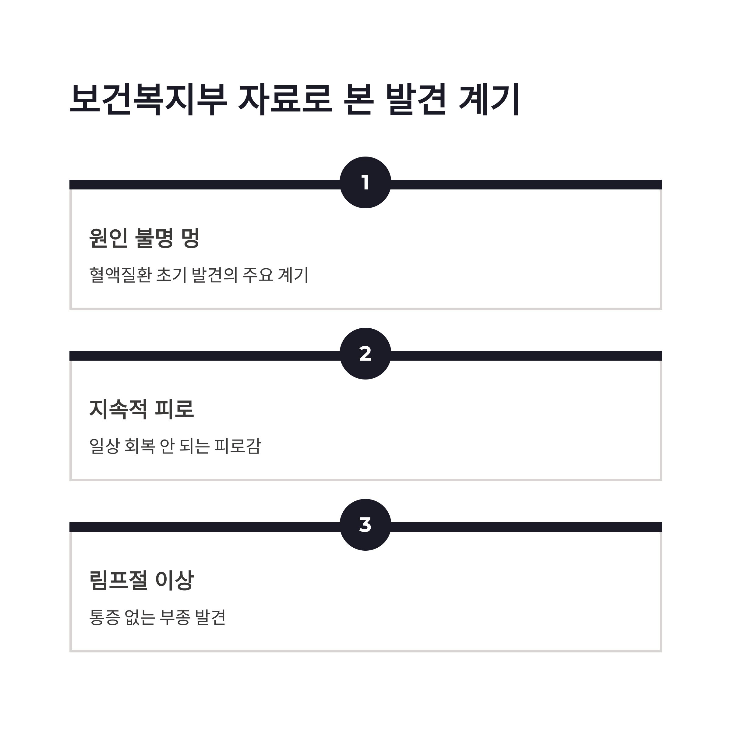 요즘 이상하게 혈액암 초기증상 검색이 늘었다고 하더라구요. 저도 솔직히 팔에 멍 하나 생기면 “어디 부딪혔나?” 하고 넘겼는데요. 근데 특별히 세게 부딪힌 기억도 없는데 멍이 자주 생기면 조금 생각해봐야 합니다. 혈액암 초기증상 중 하나가 바로 혈소판 감소로 인한 멍, 코피, 잇몸 출혈이에요. 특히 멍 색이 진하고 오래 가거나, 양쪽 팔다리에 반복된다면 그냥 피곤해서 그런 건 아닐 수도 있겠죠. 괜히 겁주려는 말 같지만, 실제로 2025년 보건복지부 자료에서도 혈액질환 초기 발견 계기 중 상당수가 ‘원인 불명 멍’이었다고 하더라구요. 음… 그냥 넘기기엔 찜찜한 느낌, 다들 한 번쯤 있지 않나요?