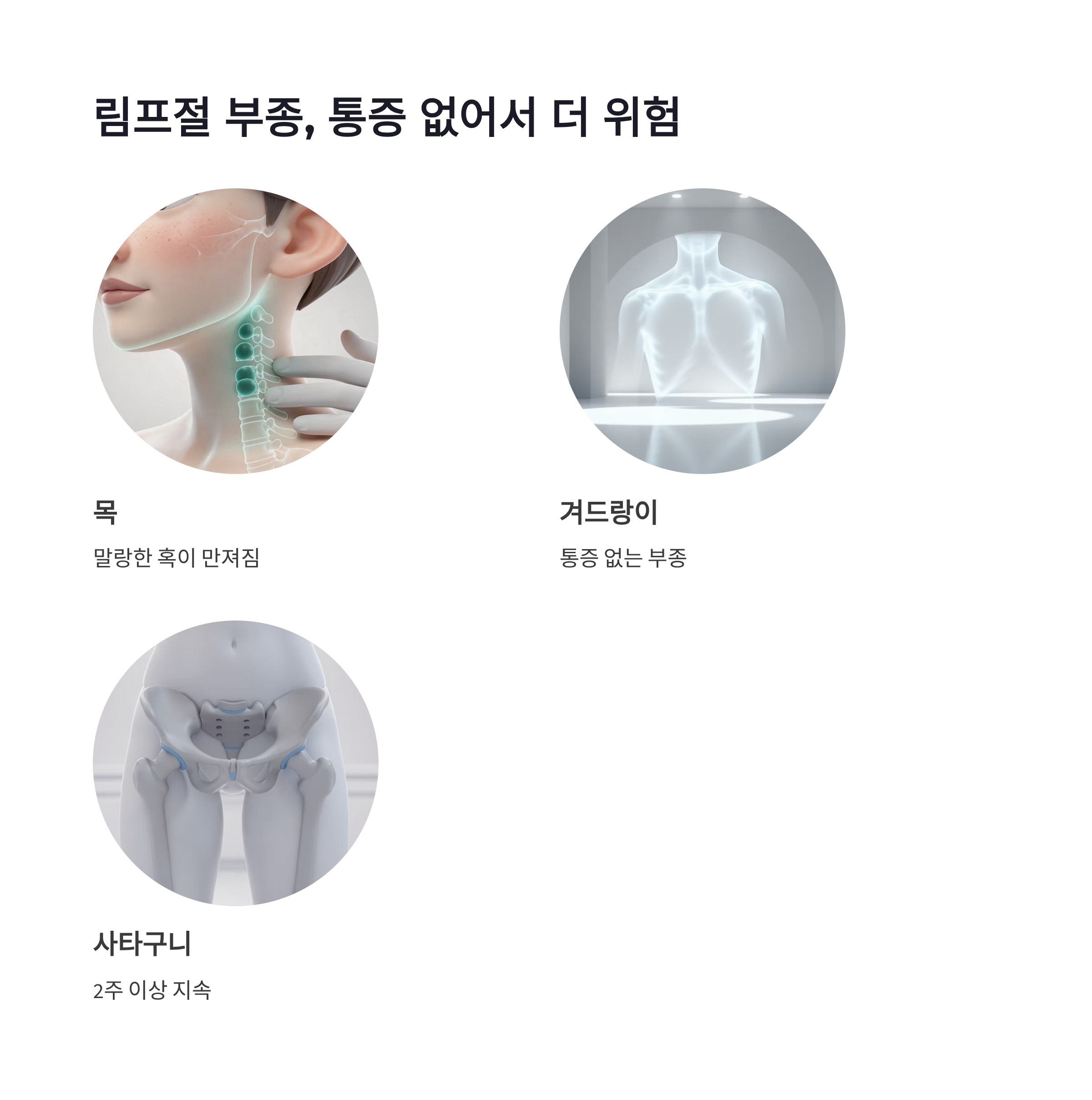 목이나 겨드랑이, 사타구니 쪽에 말랑한 혹 만져본 적 있으신가요? 안 아프니까 더 신경 안 쓰게 되는데, 이게 혈액암 초기증상 중 꽤 중요한 신호라고 해요. 2024~2026년 혈액종양학회 발표를 보면, 림프종 환자 중 절반 이상이 “통증 없는 림프절 부종”을 가장 먼저 느꼈다고 하더라구요. 장점(?)이라면 겉으로 만져져서 발견은 쉬운 편인데, 단점은 안 아프니까 방치된다는 점… 참 아이러니하쥬. 물론 감기나 염증일 수도 있어요. 하지만 2주 이상 지속된다면 병원 한 번은 꼭 가보는 게 마음 편합니다.