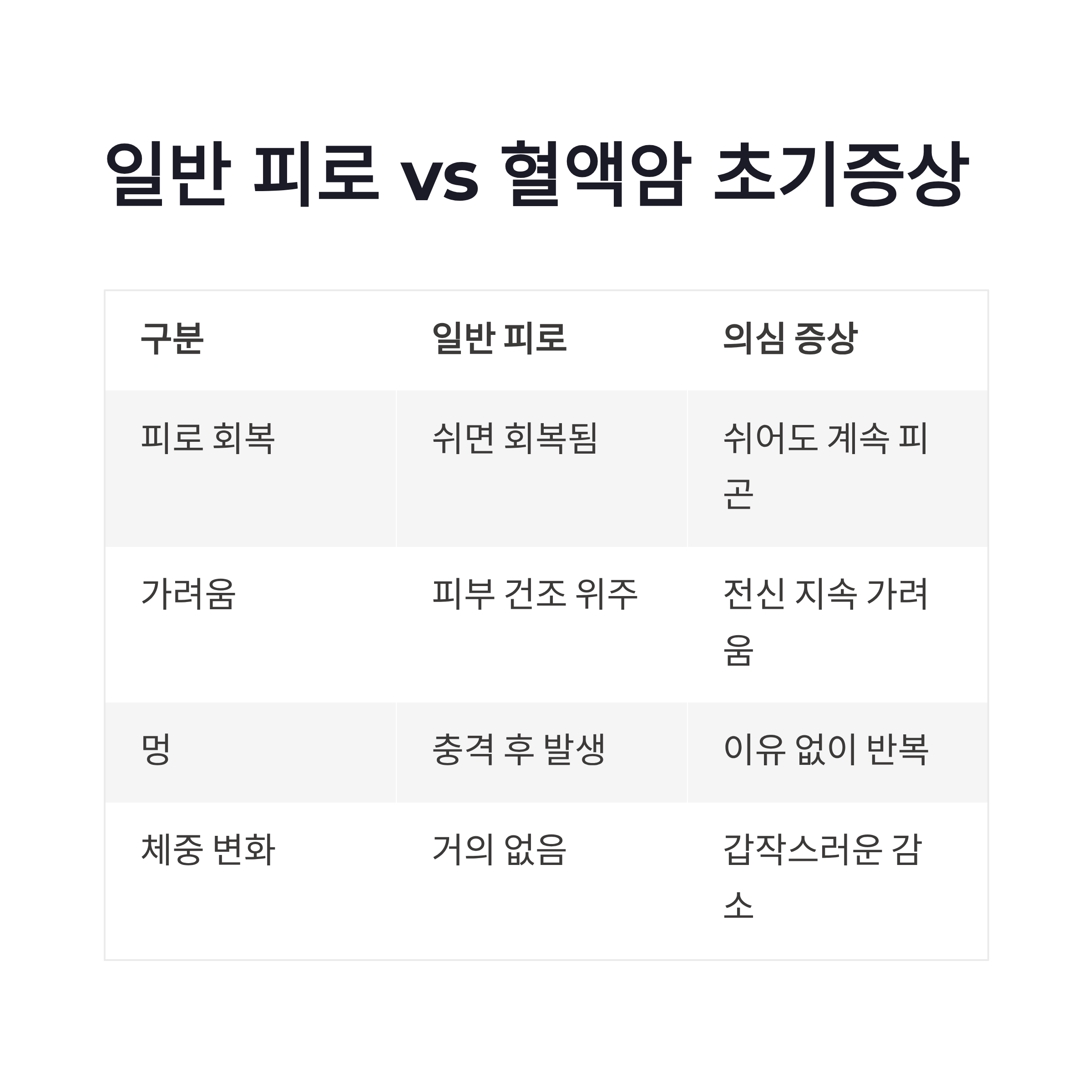 | 구분 | 일반 피로 | 혈액암 초기증상 의심 |