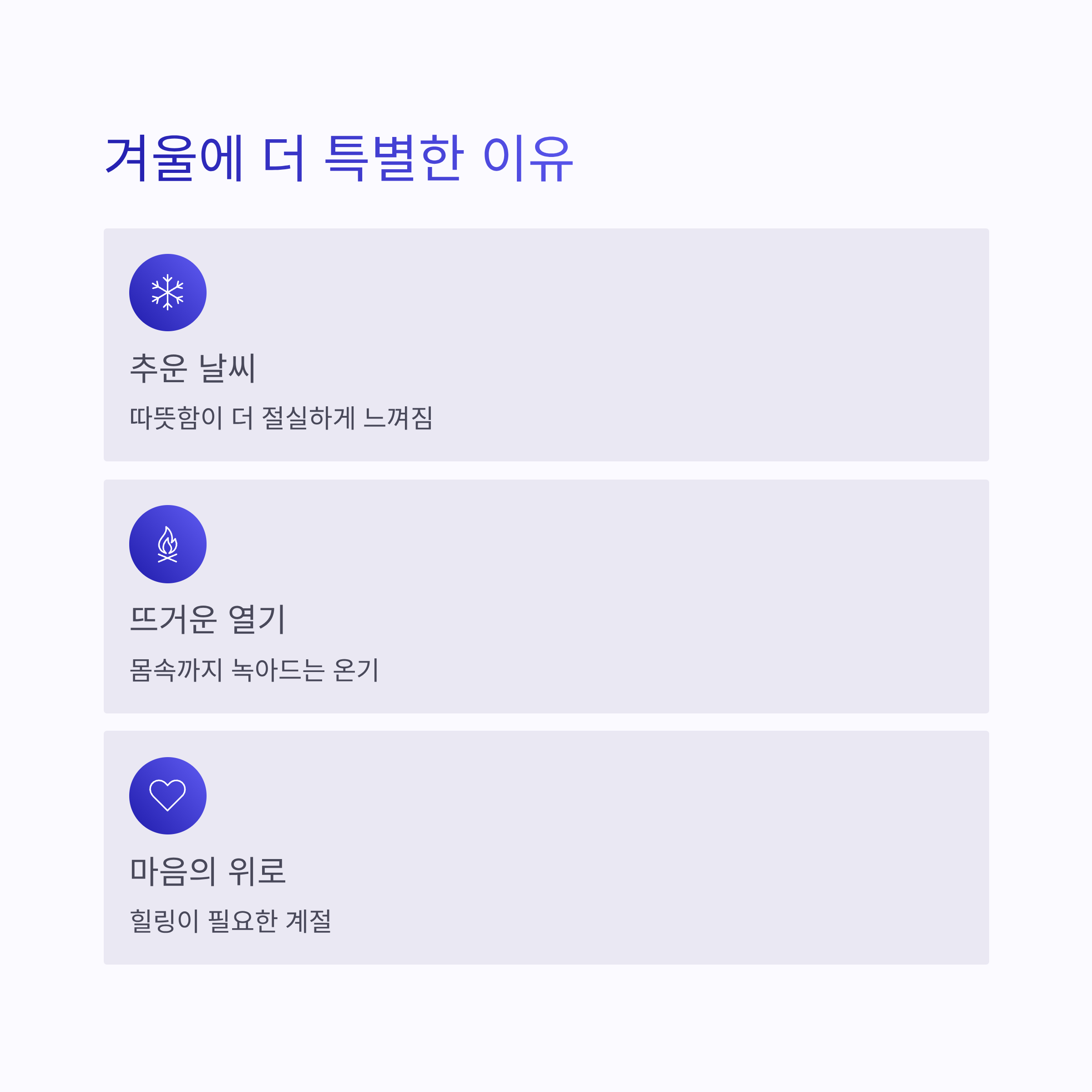 | 만족 포인트 | 땀 배출, 개운함 | 휴식, 수다 |