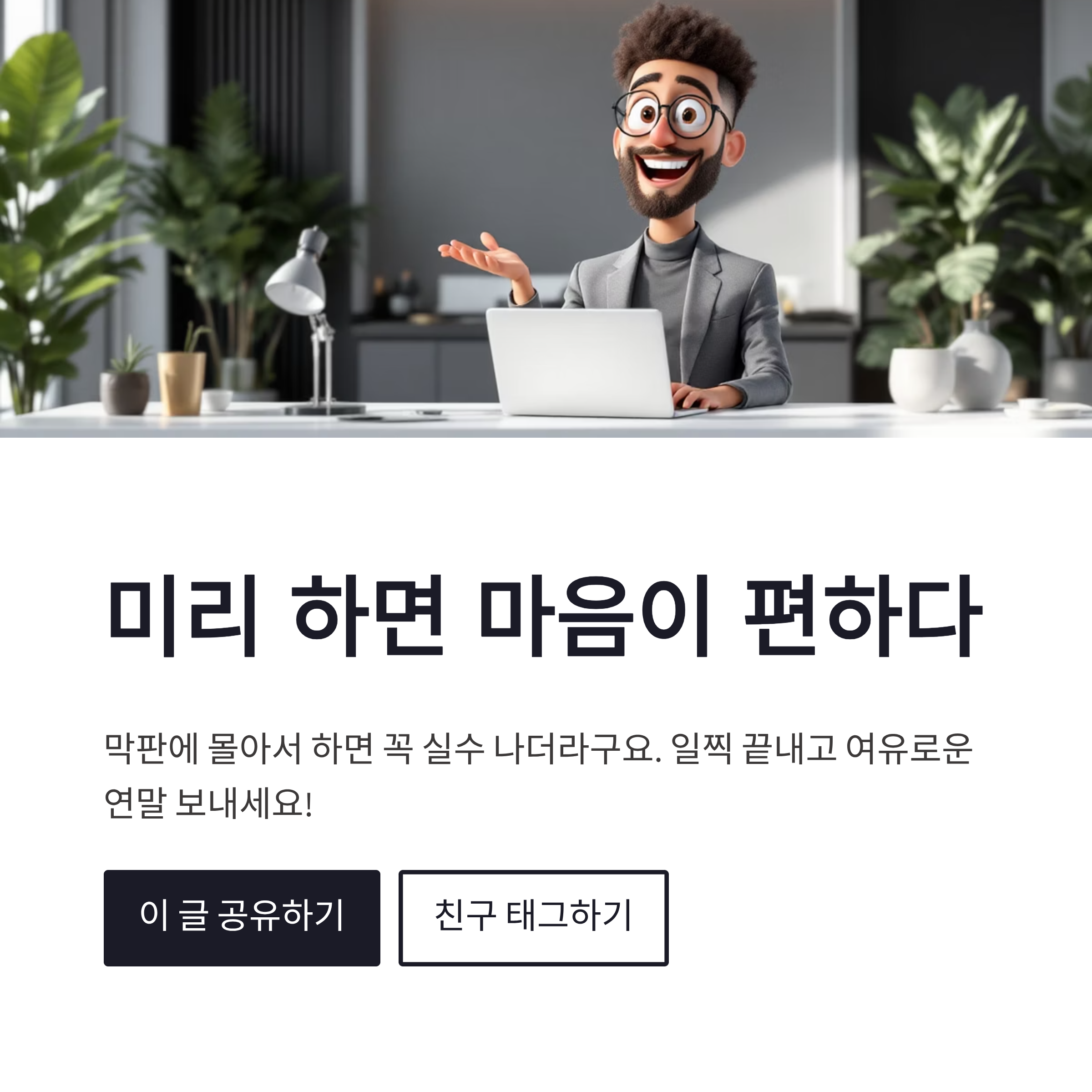 정리해보면요, 2026년 귀속분 연말정산 YETA는 홈택스 자료 준비 → YETA 업로드 → 수동 항목 보완 → 제출 이 흐름만 기억하면 됩니다. 미루다가 막판에 하면 꼭 하나씩 빠지더라구요 ㅋㅋ 저는 이번에 일찍 끝내고 나니까, 연말이 좀 덜 피곤했구요. 괜히 뿌듯…ㅎㅎ 혹시 회사 연말정산 시스템 쓰면서 막혔던 부분 있으셨나요? 다들 어디서 제일 헷갈리셨는지 은근 궁금하네용.