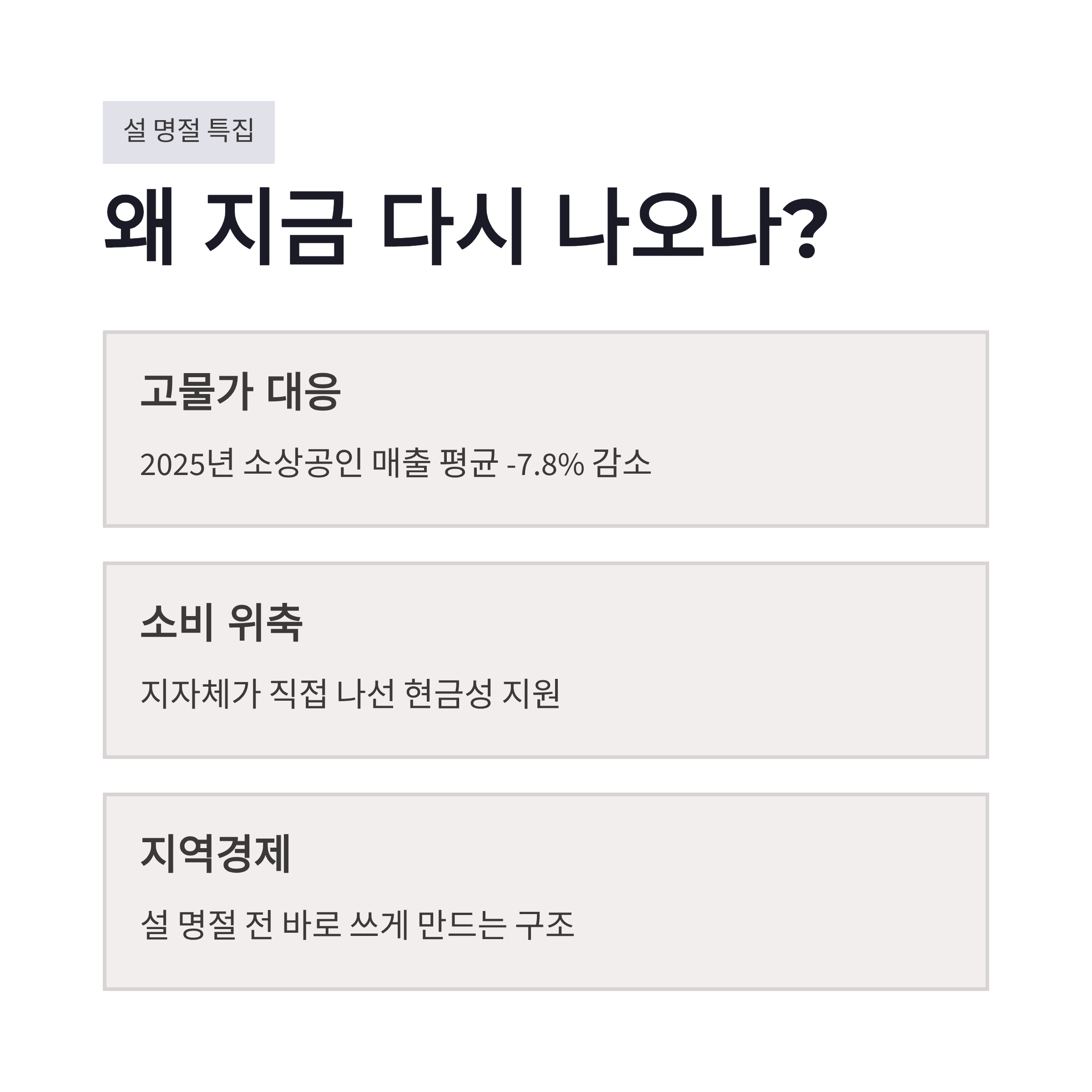 민생지원금 3차 지급, 왜 지금 다시 나오나 (설 명절·지역경제)