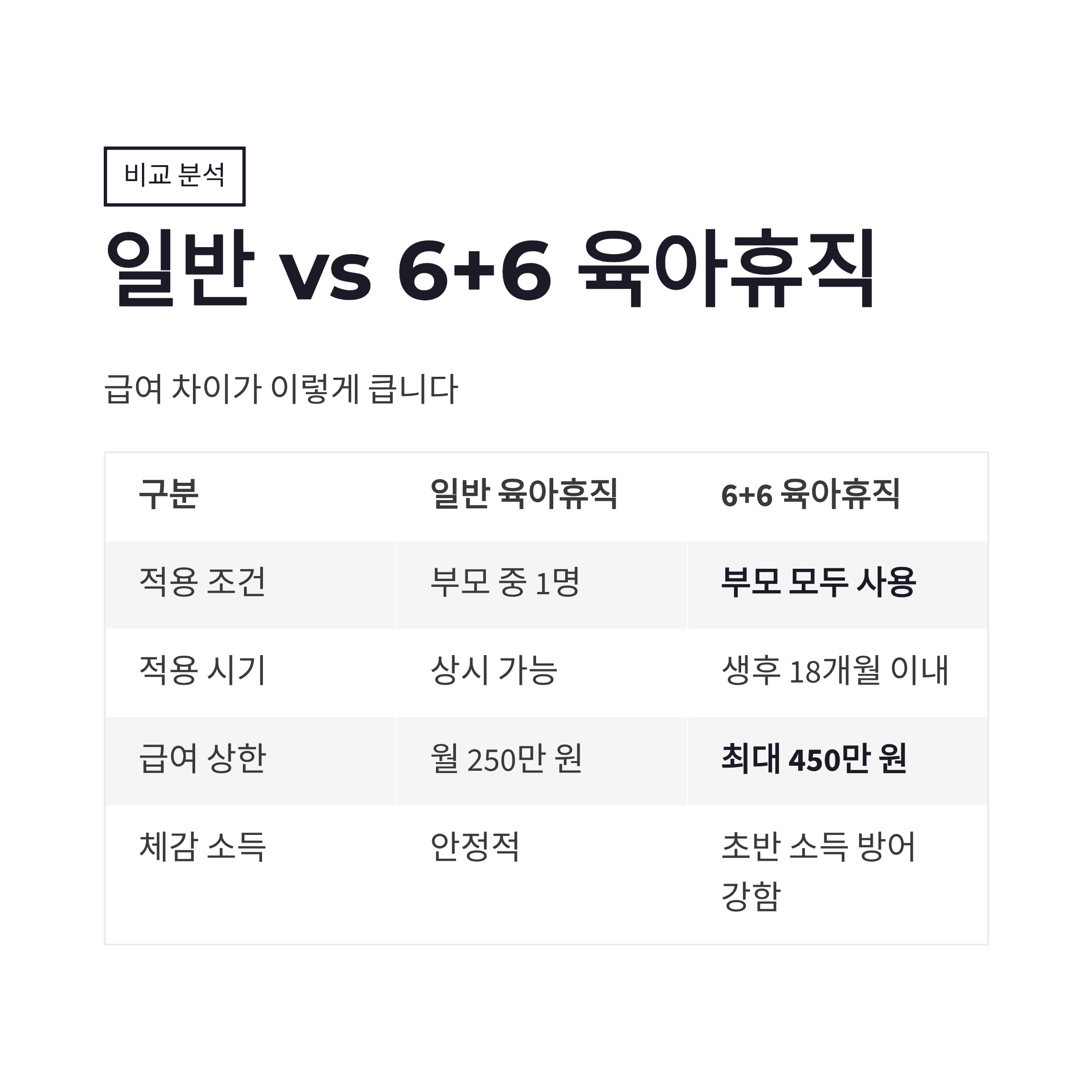 | 구분 | 일반 육아휴직 | 6+6 육아휴직 |