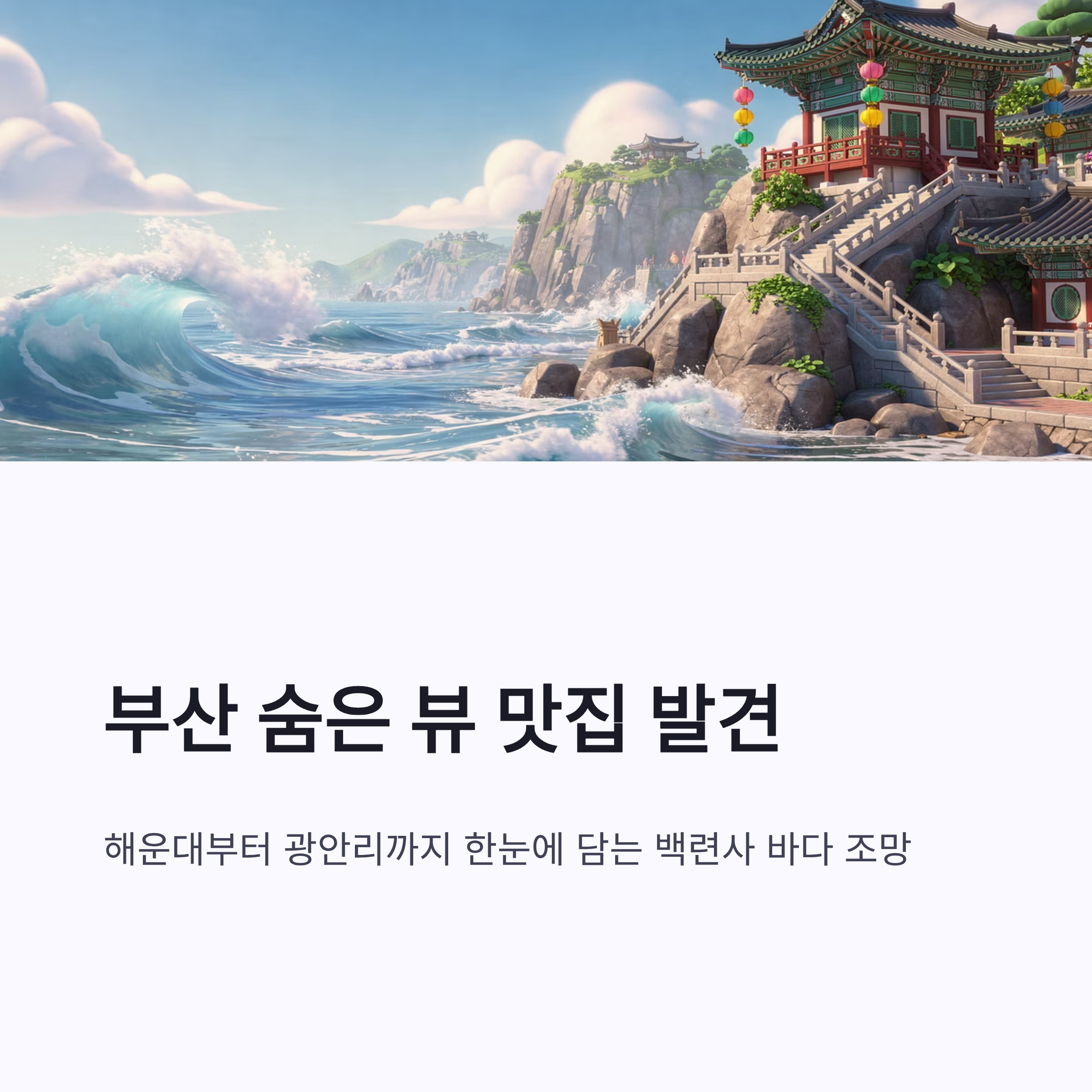 정리해보면 백련사 바다 조망은 화려한 관광지랑은 결이 달라요. 조용하고, 담백하고, 괜히 마음이 차분해지는 그런 느낌이랄까요. 이기대공원 산책하다가 잠깐 들르기에도 좋고, 일부러 찾아가도 후회는 없을 뷰였습니다. 부산 살면서도 이런 곳 있는 줄 몰랐던 게 좀 억울할 정도였구요 ㅎㅎ. 다음엔 해 질 무렵에 다시 한 번 가보고 싶네요.